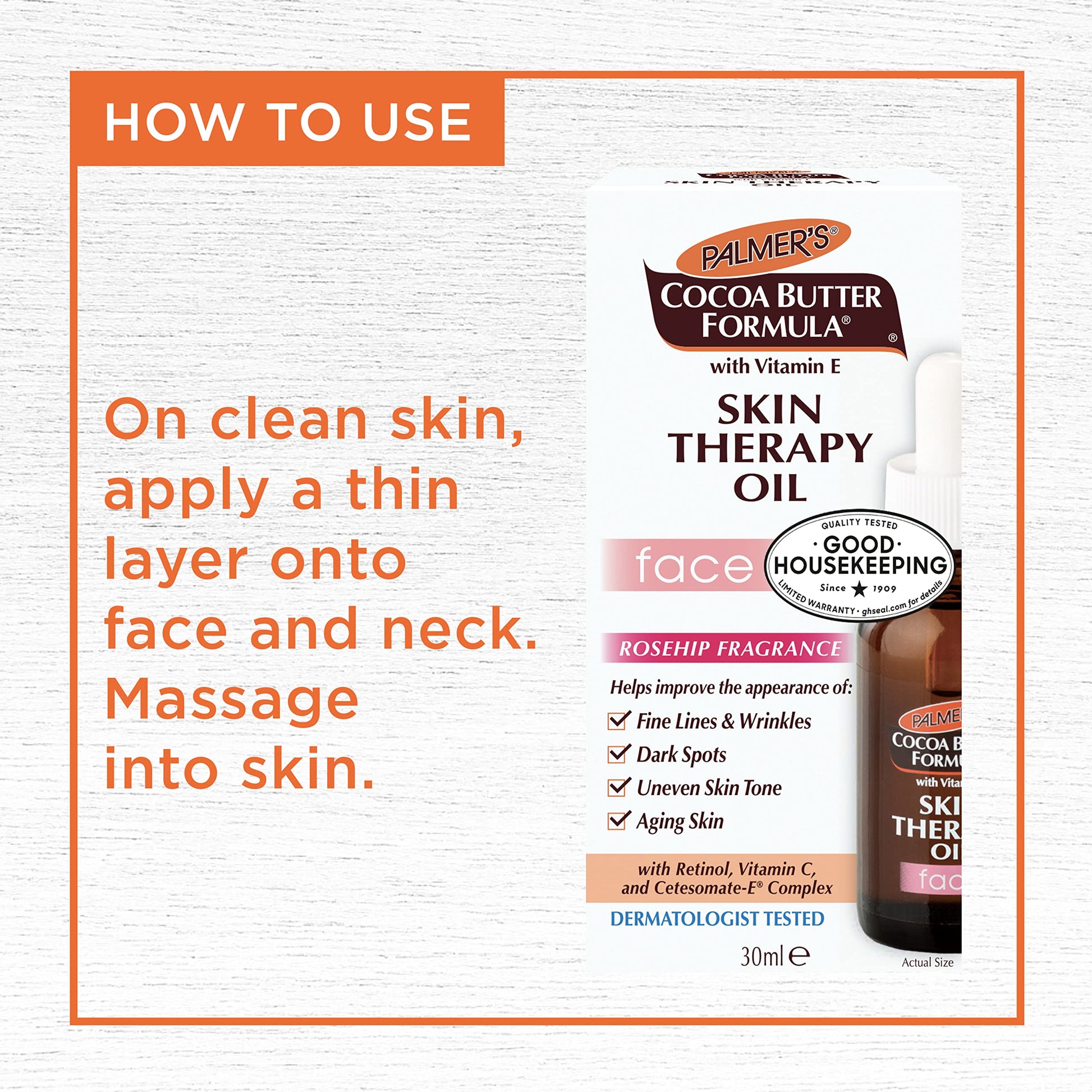 Palmer's Cocoa Butter Formula Moisturizing Skin Therapy Oil for Face with Vitamin E, C & 10 Pure Facial Oils Blend, Rosehip Oil Fragrance, 1 Ounce