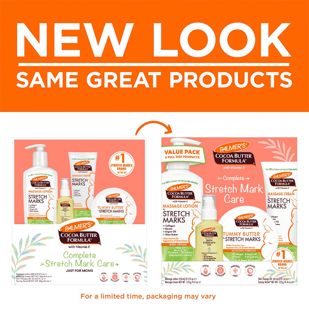 - Pregnancy Essentials: Help improve the appearance of scars and stretch marks during and after your pregnancy with this maternity skincare kit featuring a collection of pregnancy must-haves from Palmer's such as Stretch Marks Lotion or Stretch Mark Cream for Pregnancy, Tummy Butter Balm and Skin Therapy Body Oil for Stretch Marks