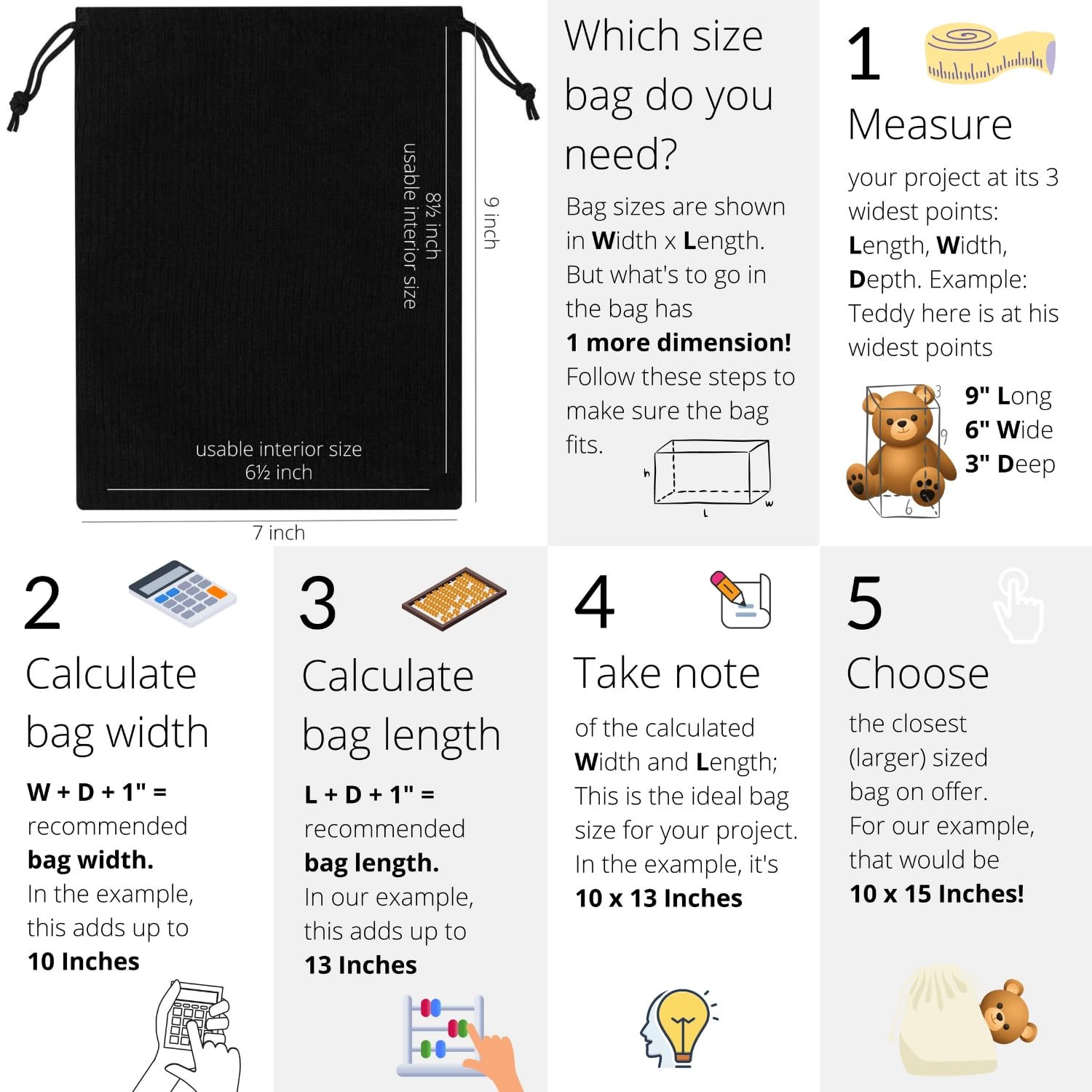- VERSATILE SETS OF FIVE: Each set includes five drawstring pouches, sets available in varying sizes to meet all your storage needs, from small makeup pouches for purses to larger bags for travel and organization