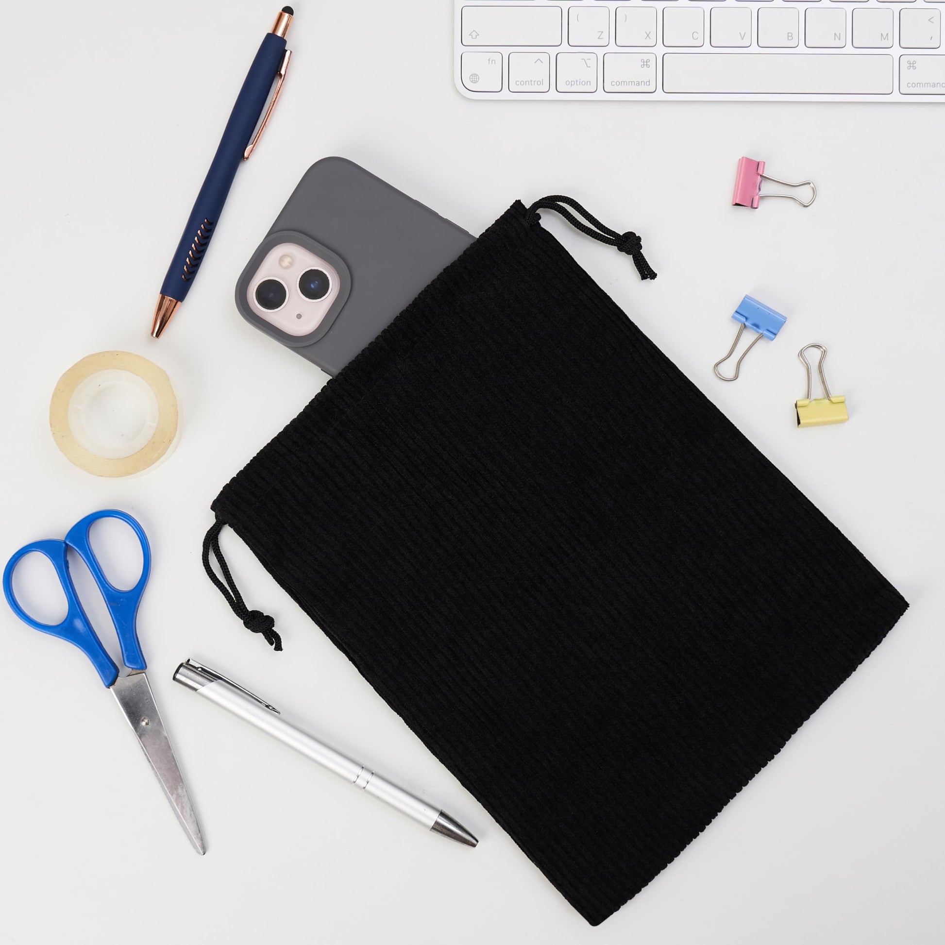 PALTERWEAR Corduroy Drawstring Bags - Set of 5 - For Organization, Make-up, Travel, Purse, Storage, Office and More (Black, 7 x 9 Inch)