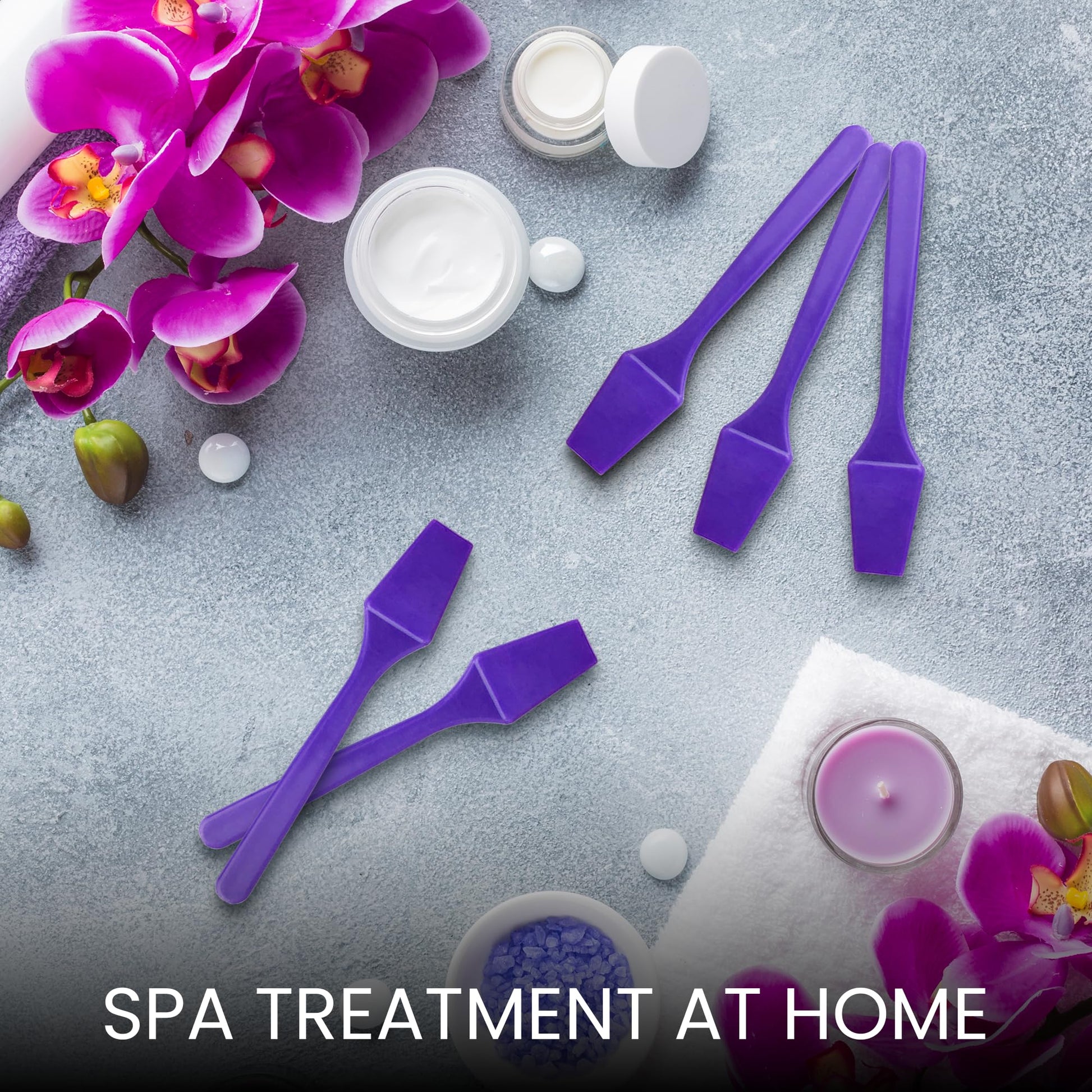 PANA 100pcs Brand Cosmetic Make Up Disposable Plastic 2.5" Spatulas Skin Care Facial Cream Mask Spatula (100 Pieces in a Container) (PURPLE)