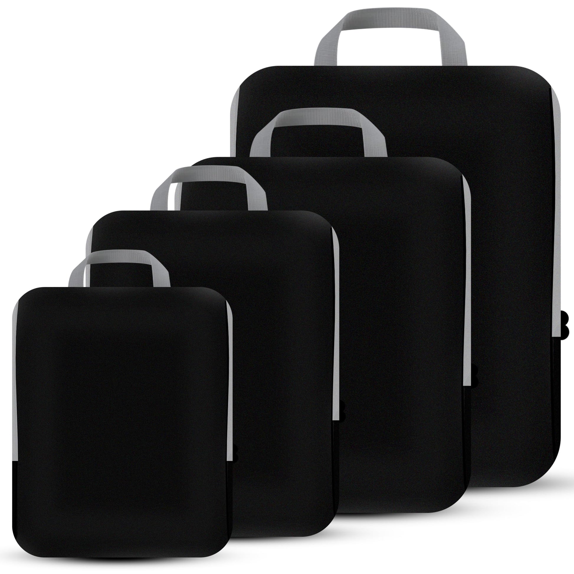PANDA JOYS 4 Set Compression Packing Cubes Travel - Travel Accessories Expandable Packing Organizers for Carry On - Essentials Luggage Bags - Black