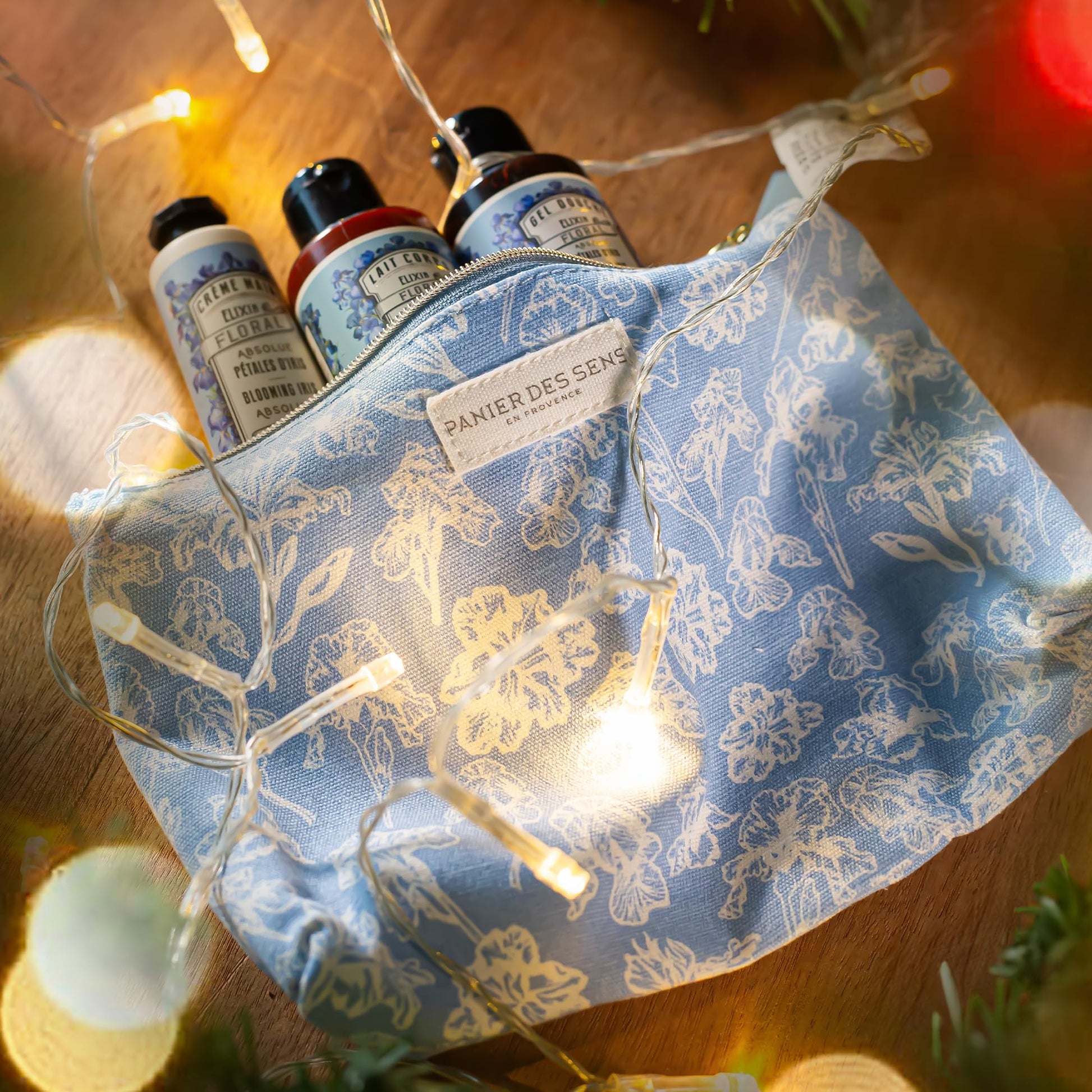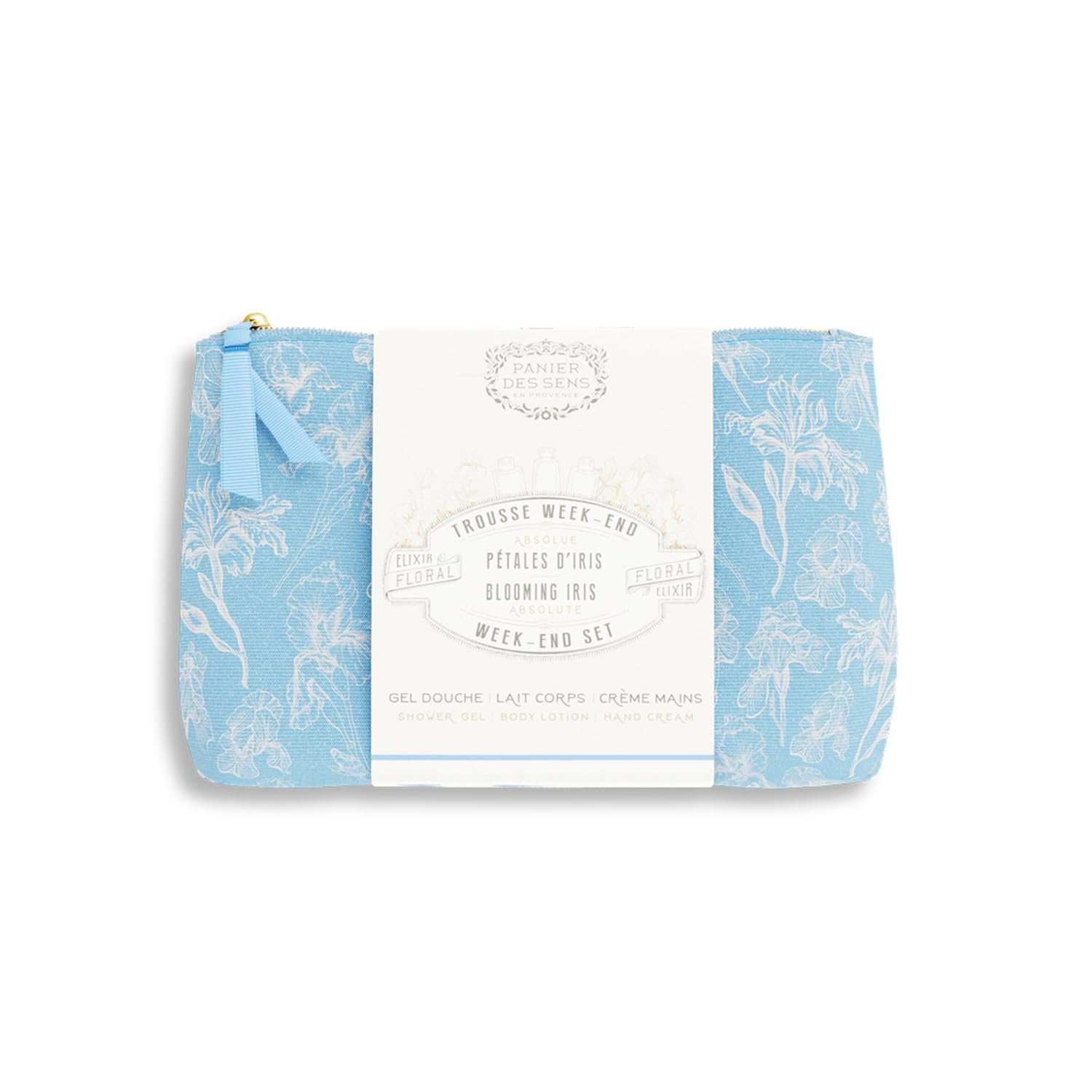 Panier des Sens – Iris Hydrating Set for Women – Body Lotion + Shower Gel + Hand Cream - Travel pouch included - Body Care Kit with 96% Natural Ingredients – Self Care Gifts for women