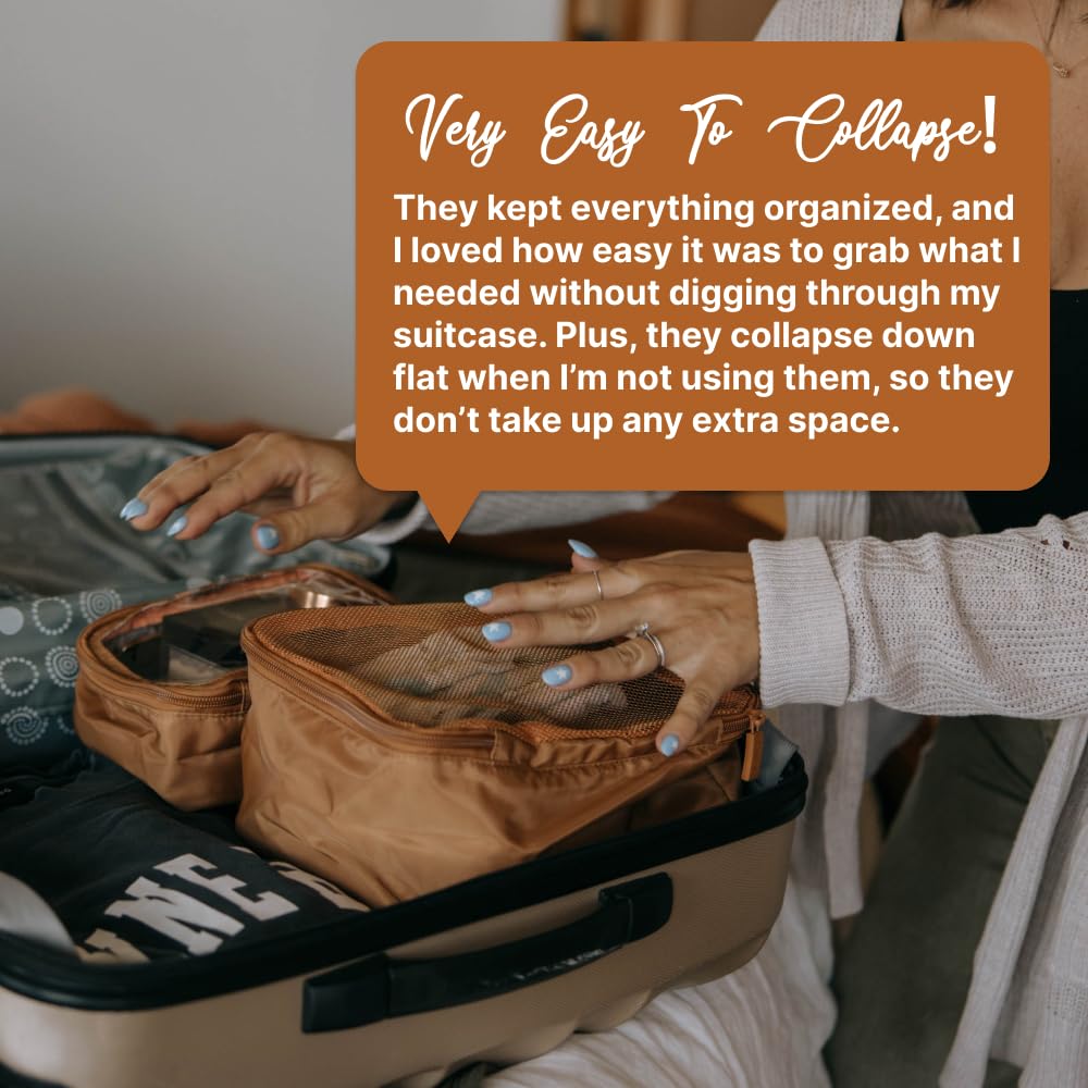 - COLLAPSIBLE, LIGHTWEIGHT & EXPANDS TO FIT MORE – Designed to hold more than they appear, these cubes collapse for compact storage when not in use. The durable, wipeable material and smooth-glide zippers make them perfect for daily outings, travel, but also as packing cubes for duffle bag and packing cubes for backpacking.