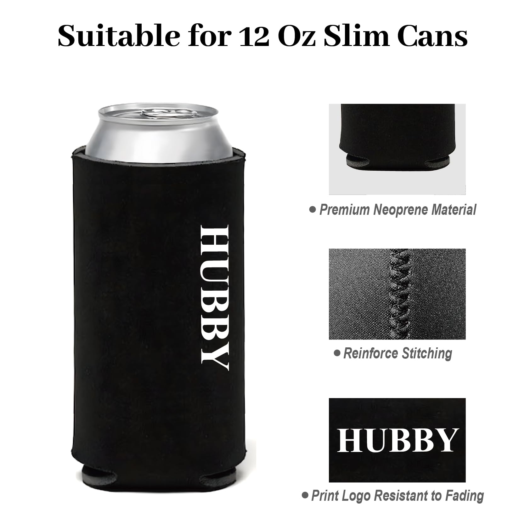 - 【Perfect Fit】: Designed specifically for 12 Oz cans and bottles. Our hubby and wifey slim can cooler ensures a snug and secure fit, preventing slipping or sliding.