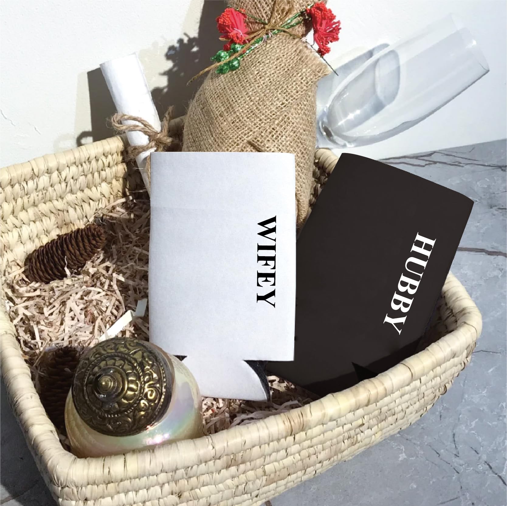 PartyGifts&beyond Honeymoon Essentials Hubby and Wifey Gifts Slim Can Coolers Wedding Can Coolers Engagement Gifts for Couples(HW-TR)