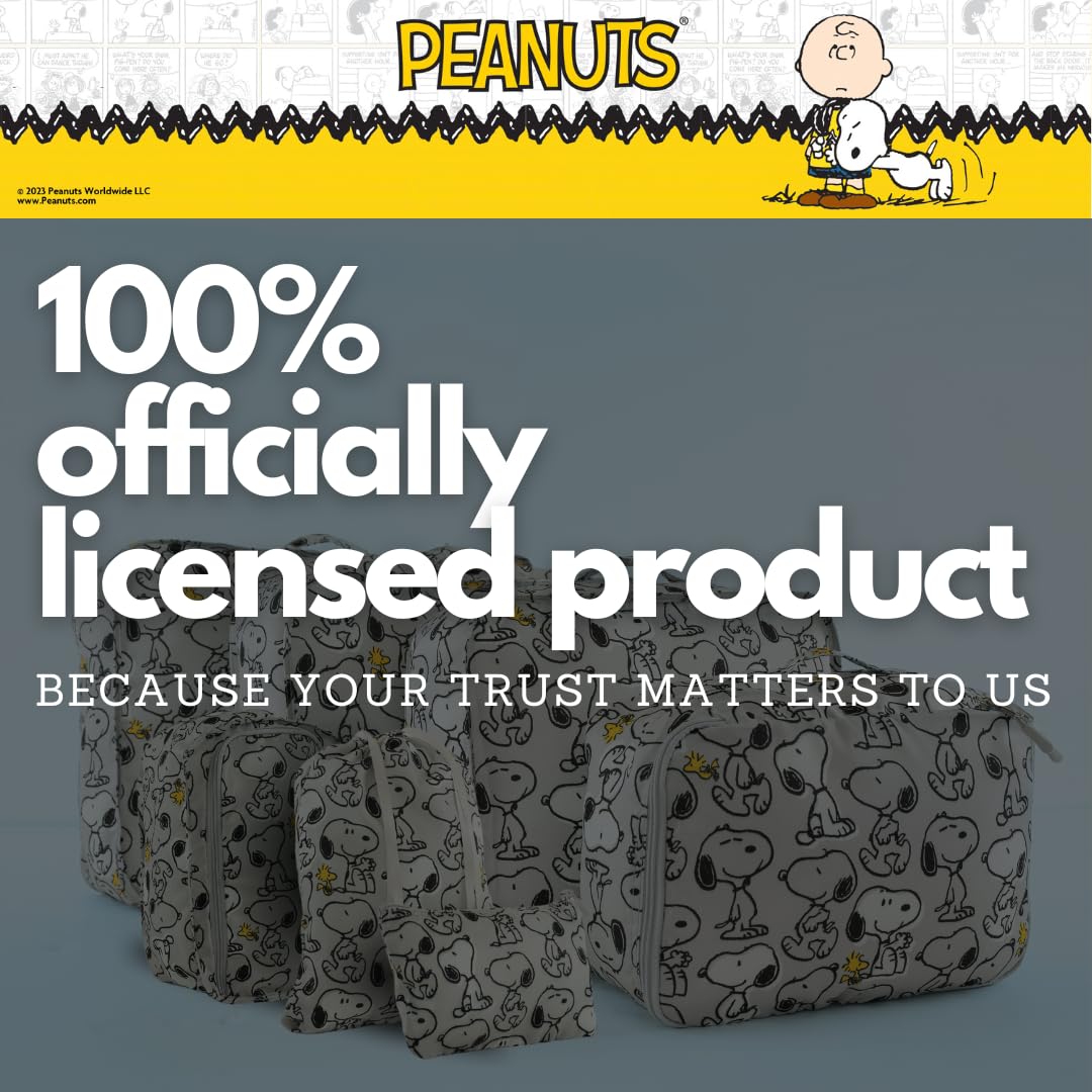 - PEANUTS SNOOPY DESIGN: Travel with the timeless charm of the Peanuts gang! These packing cubes feature an adorable Snoopy and Woodstock pattern in a sleek monochrome palette with pops of yellow. This design adds a classic, playful touch to your travels, bringing the beloved Peanuts characters along for the journey!