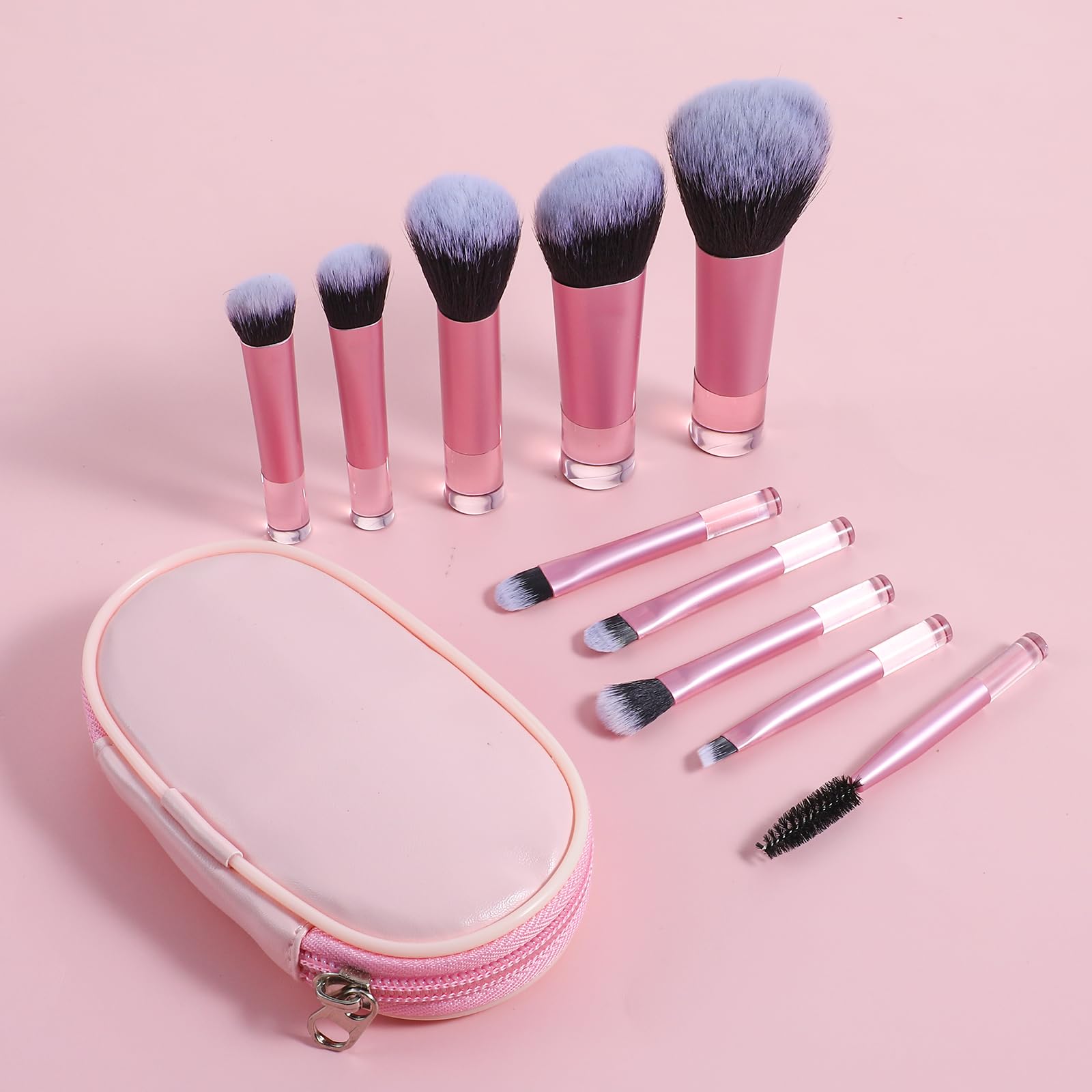 PEOVLVN 10 Pcs Travel Makeup Brushes, Mini Makeup Brushes Travel Set with Case Portable Travel Size Makeup Brushes Cosmetic Brushes Kit for Foundation Eyeshadow Highlight Contour Blush & Concealer