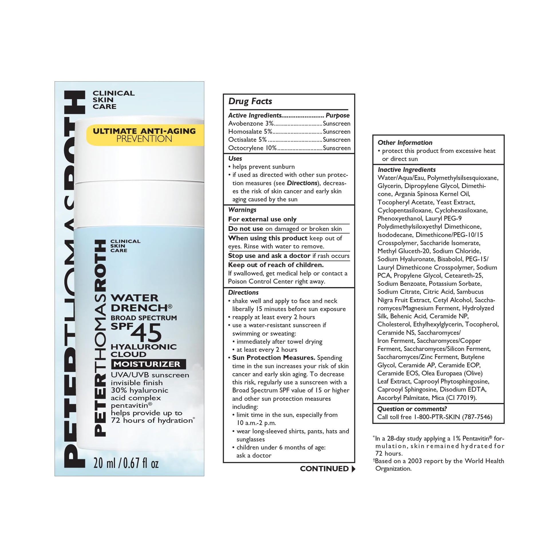 - Peter Thomas Roth Water Drench Broad Spectrum SPF 45 Hyaluronic Cloud Moisturizer 0.67 oz.