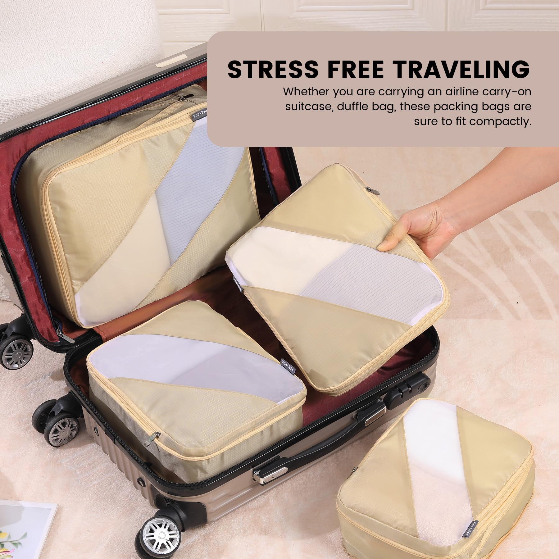 PFEYRPK Travel Packing Cubes, Compression Organizer Set of 4, Lightweight Storage for Suitcase, Vacation, Business Trips (Khaki)