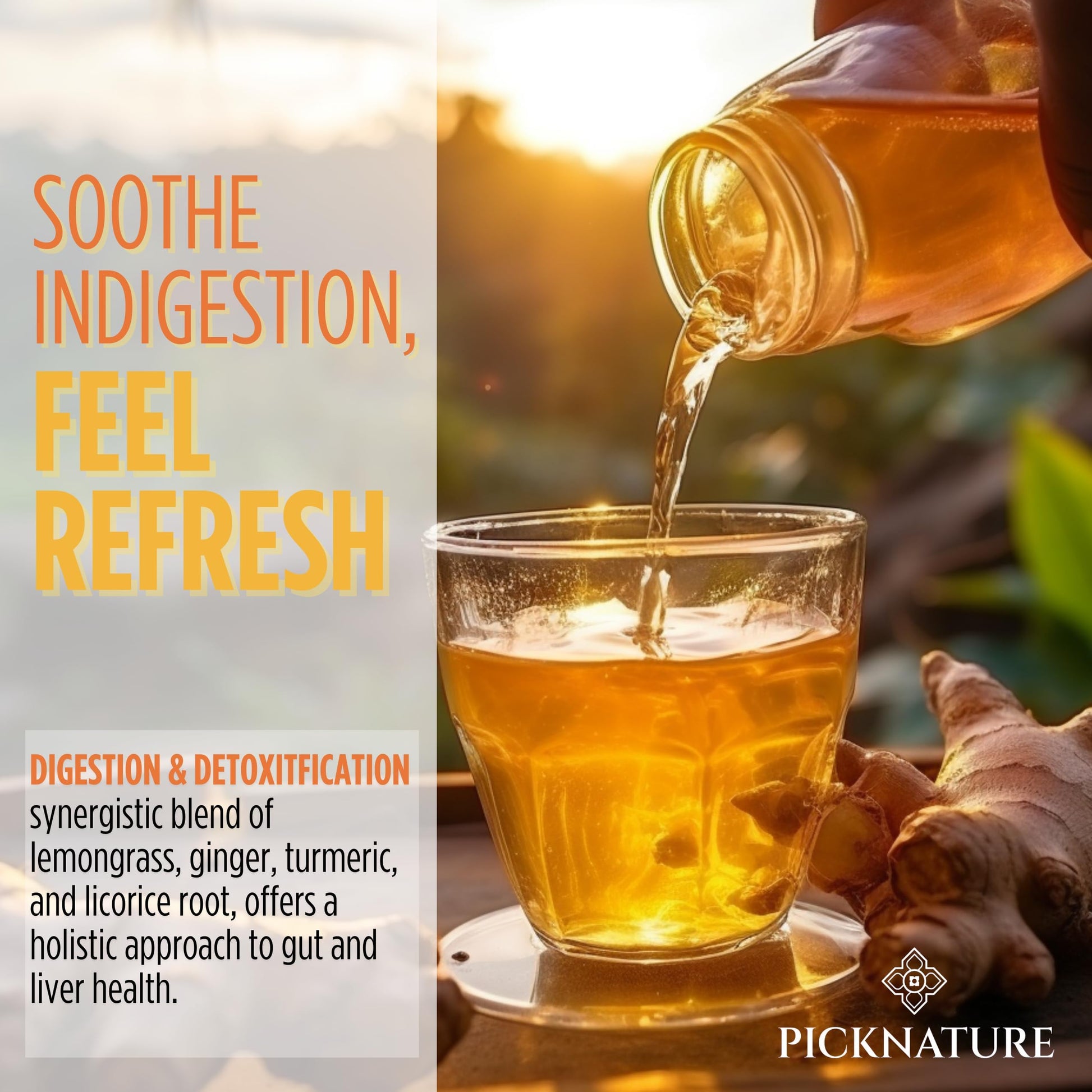 - Natural Ingredients: Enjoy the pure essence of lemongrass, ginger, turmeric, and licorice root in every cup of tea. With no additives or artificial ingredients, PICKNATURE ensures a wholesome and authentic herbal tea experience.
