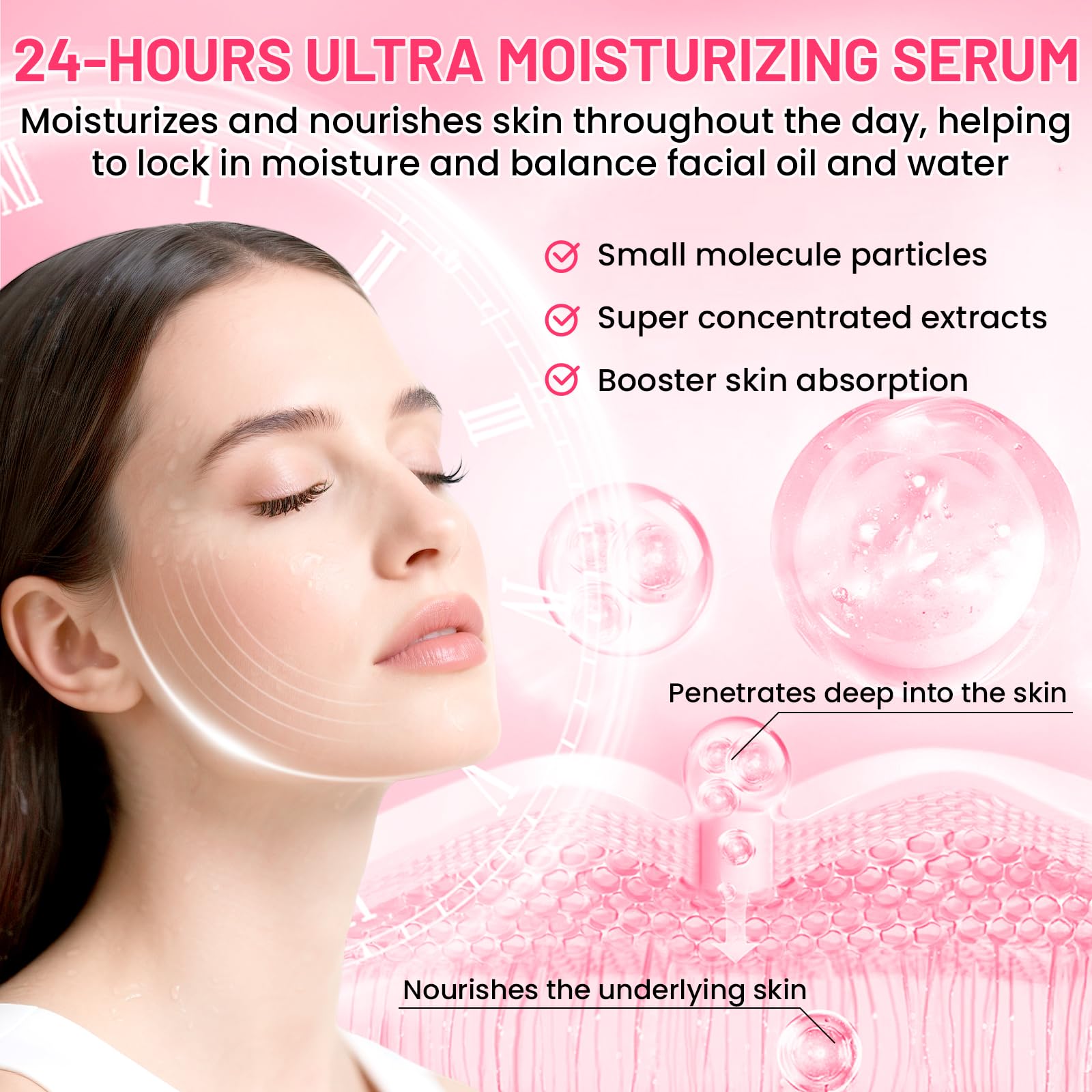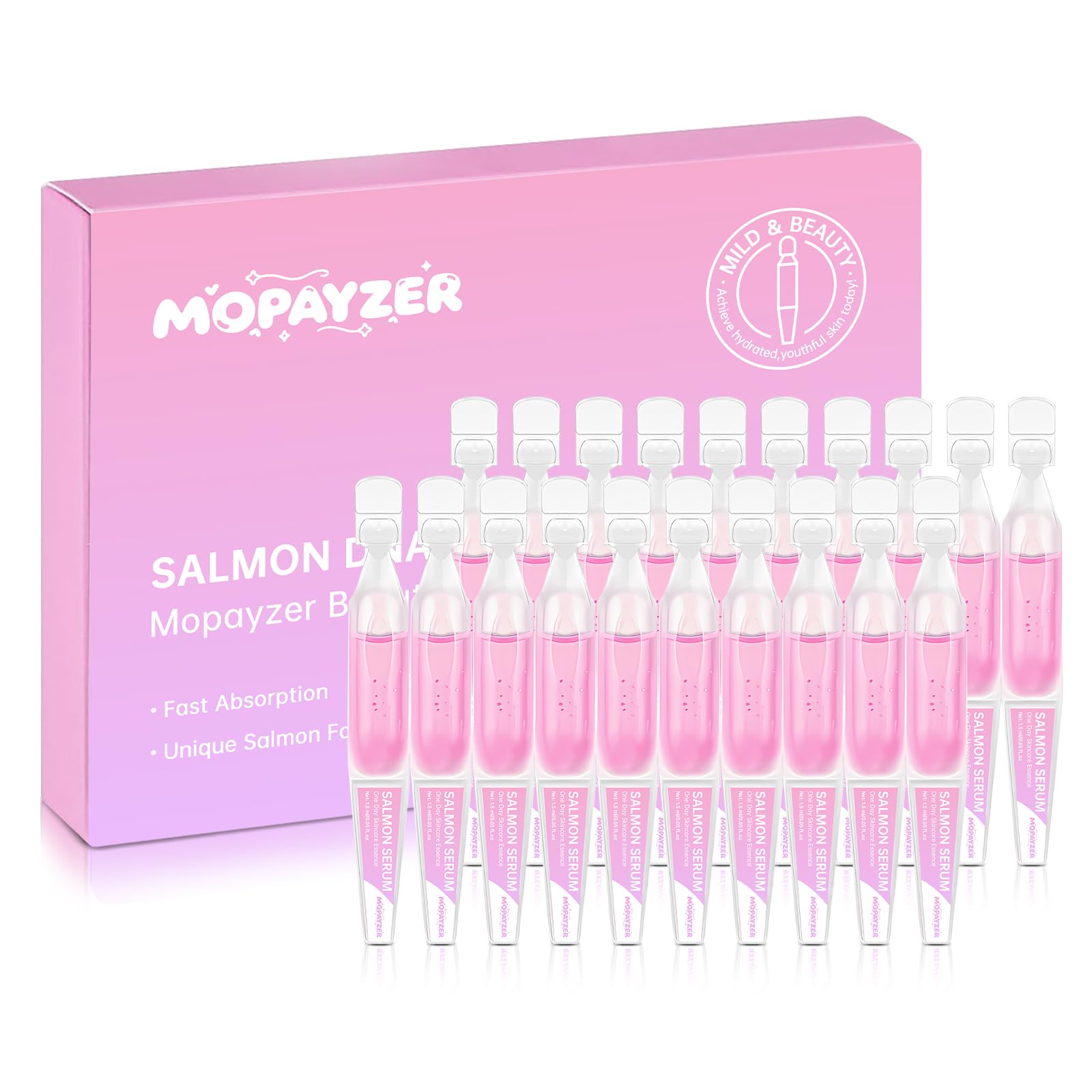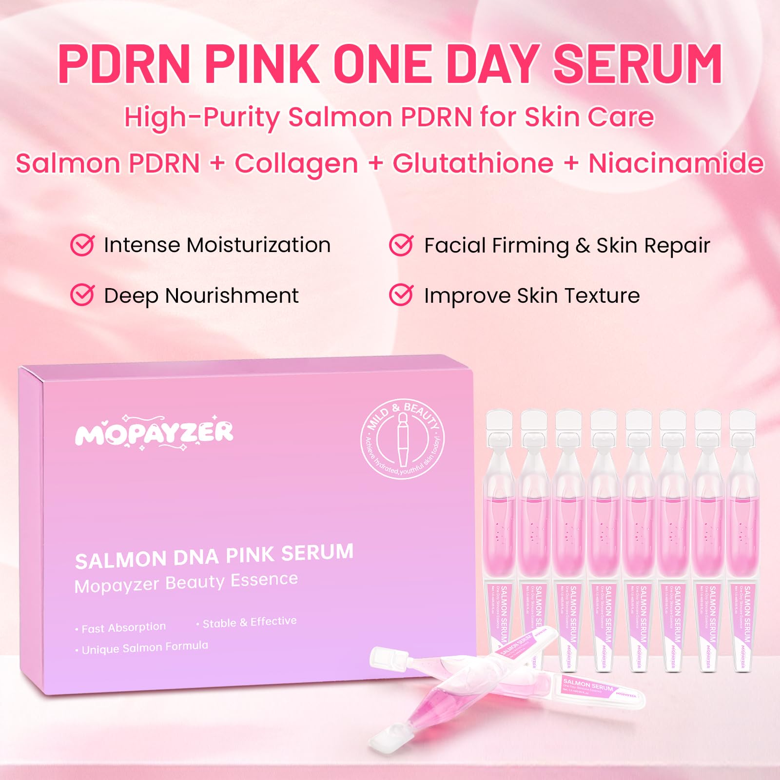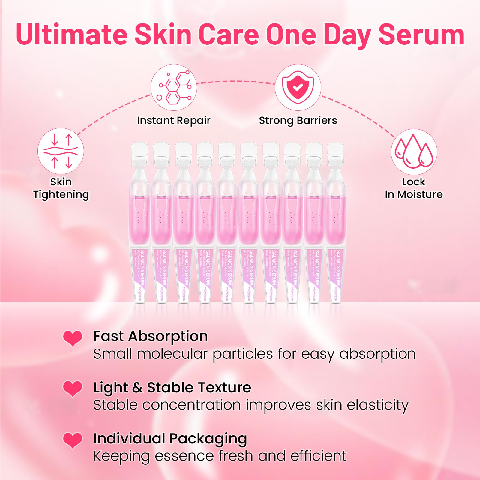 Pink Skincare Serum, High Purity Concentrated Essence, Intense Moisturization & Nourishment, Salmon DNA Skincare Serum for Firming Face & Repairing Skin, 0.05 fl.oz x 20 ampoules