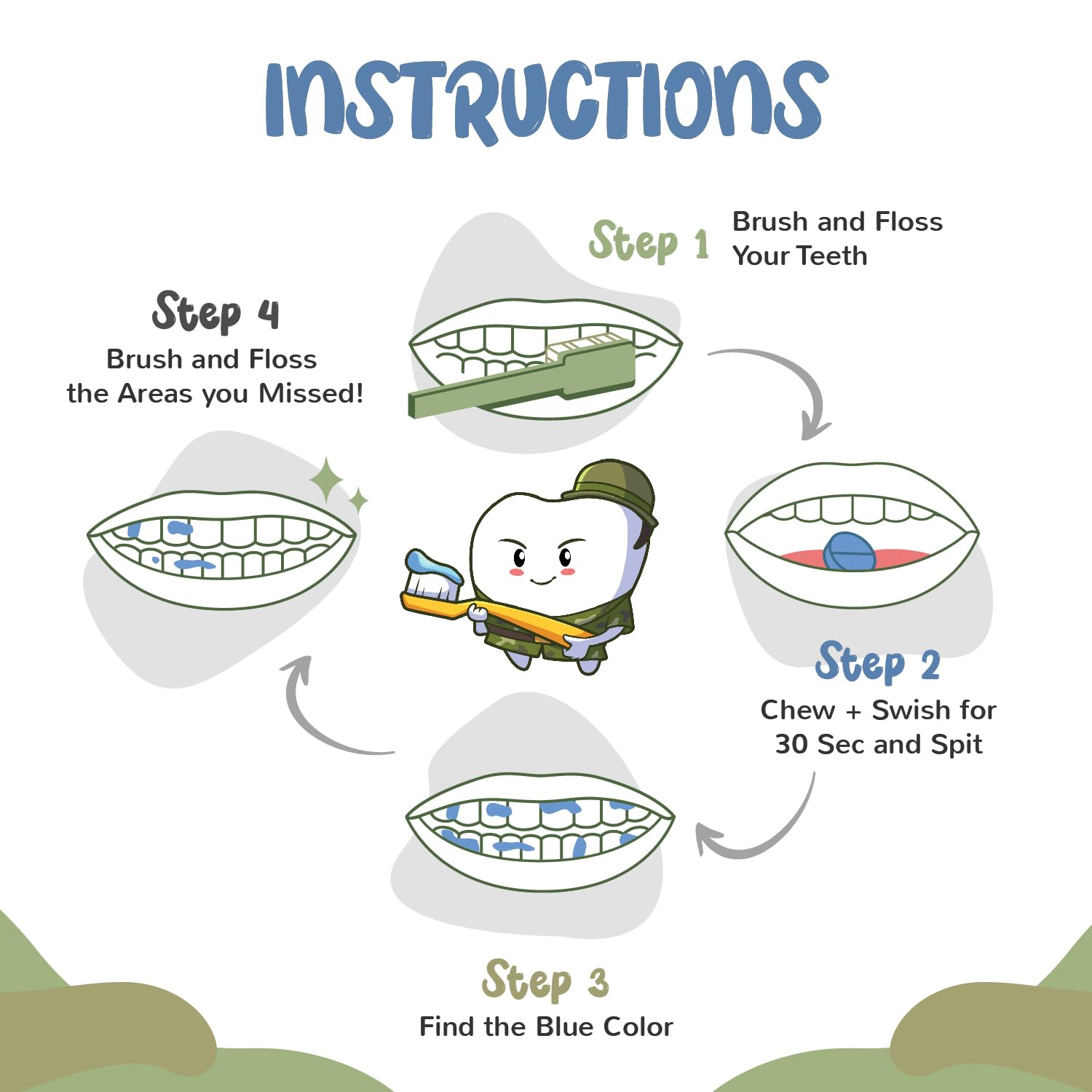 - Brushing Habits For Life - Our disclosing tablets for teeth brightly stain areas where brushing and flossing have been missed. This helps kids see where they have missed plaque removal and correct it.