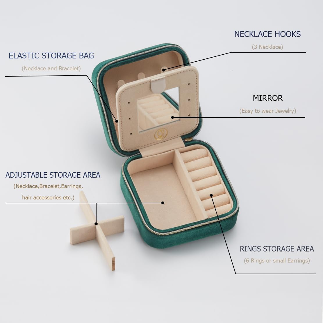 - Luxurious Velvet -- This mini jewelry box is made by high quality velvet, which bring a soft and luxurious feeling. The soft lining helps to protect your Jewelries from scratch and damage, It is classic and fashionable with high quality golden zipper