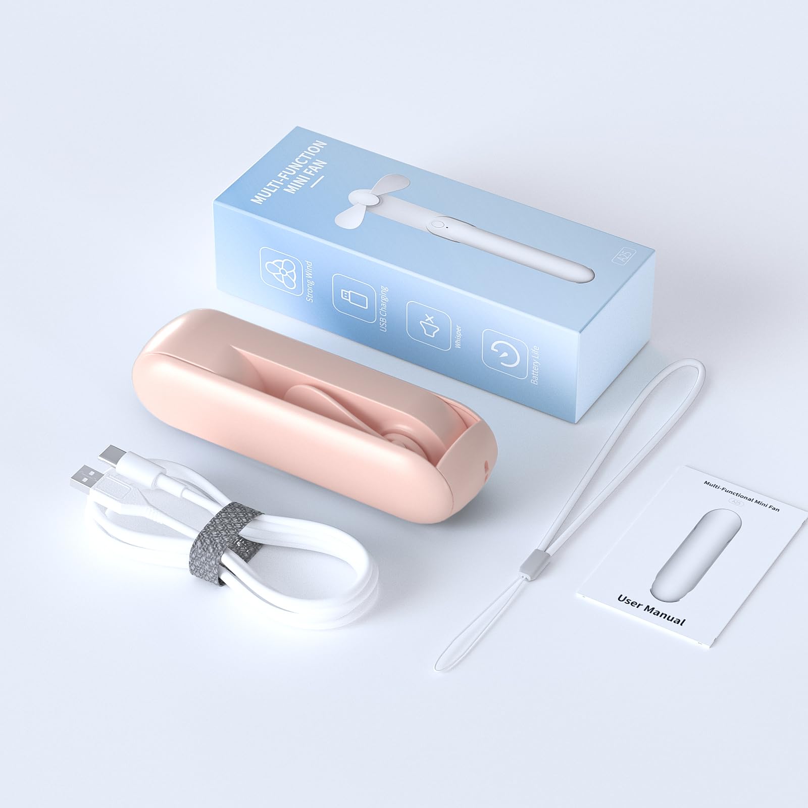 - 【Your Travel Essentials and Perfect Gift】2 IN 1 mini fan is the perfect companion for travel, events, makeup, mascara, commuting, wedding, camping, home, office, school and so on. It is also a lovely ideal summer gift for ladies, girls, men, boys, parents, friends, kids, Christmas, birthdays, all joyous occasions. PACKING LIST: Handheld fan x 1, Type-C charging cable x 1, user manual x 1.