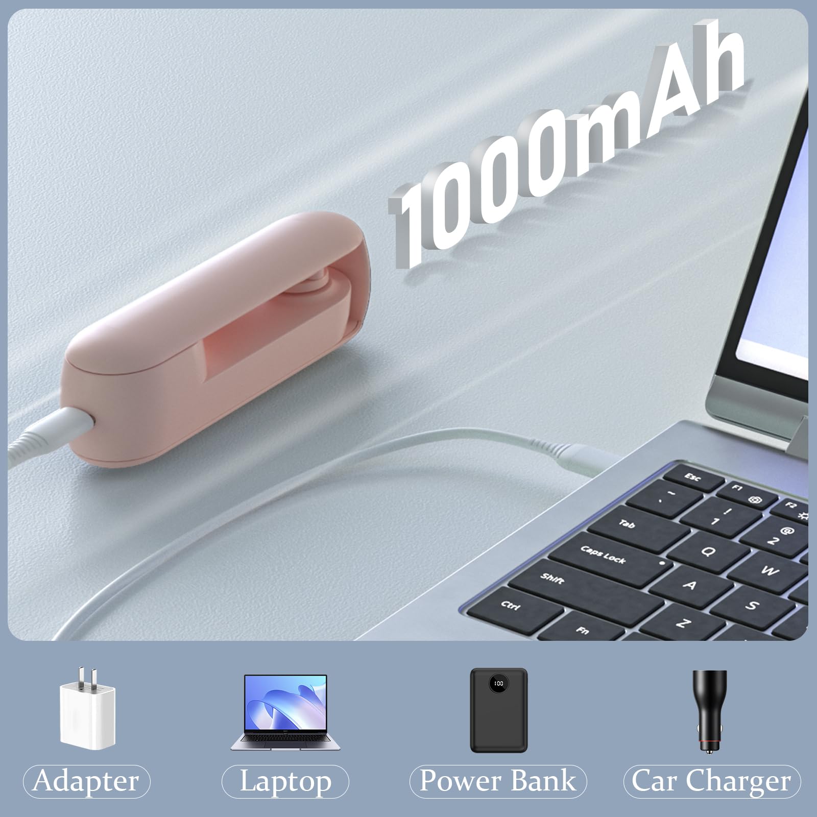 - 【Running while charging】 This handheld portable fan can be powered by USB devices such as power banks, computers, laptops, and USB chargers. Ideal for use while working, walking, or outdoor traveling. Additionally, the small fan operates quietly at 50 decibels, causing no disturbance during work or reading.