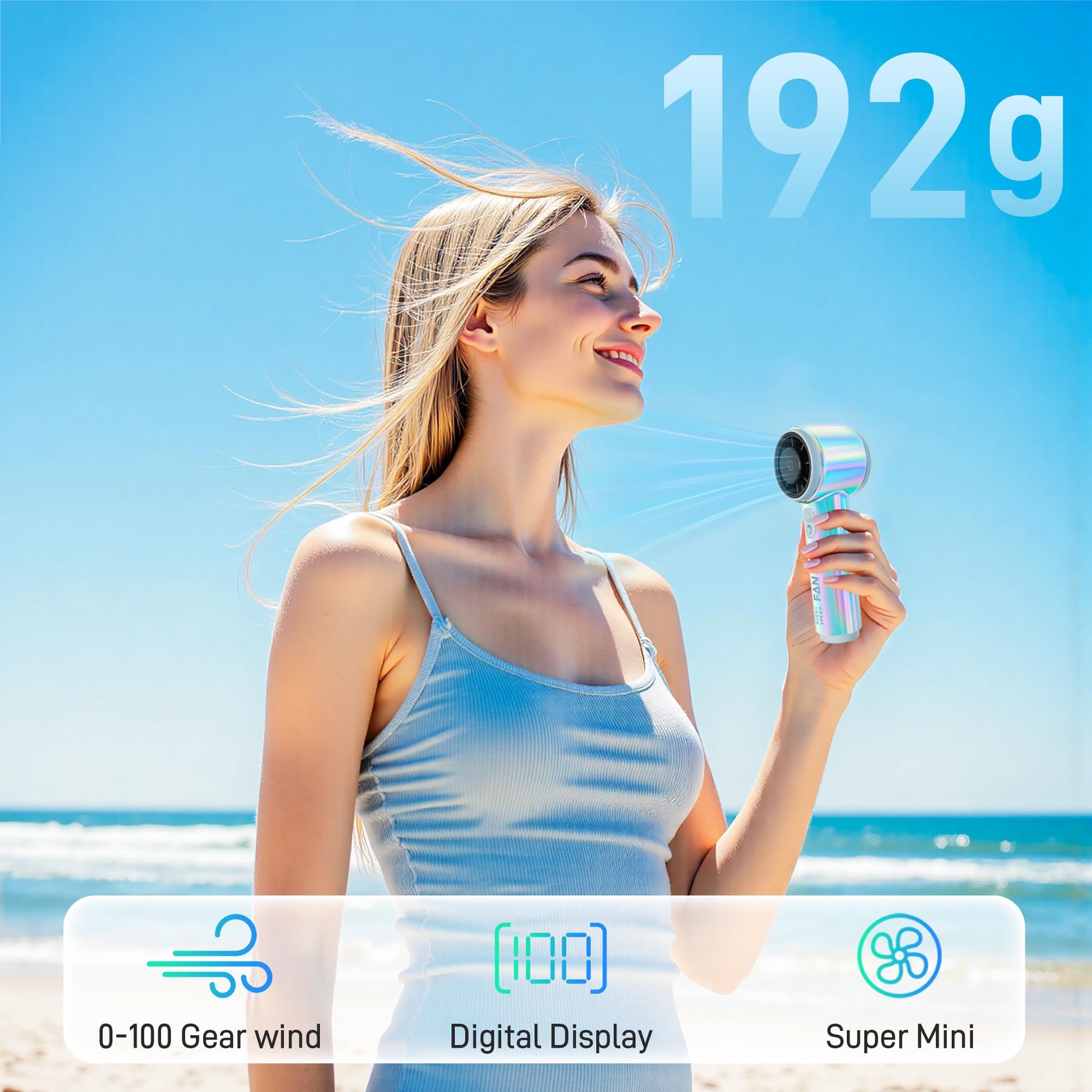 - 1-100 Speeds Turbo Wind: Mini handheld fan provides 1-100 speeds, adapt to your wind needs in different environments and moods