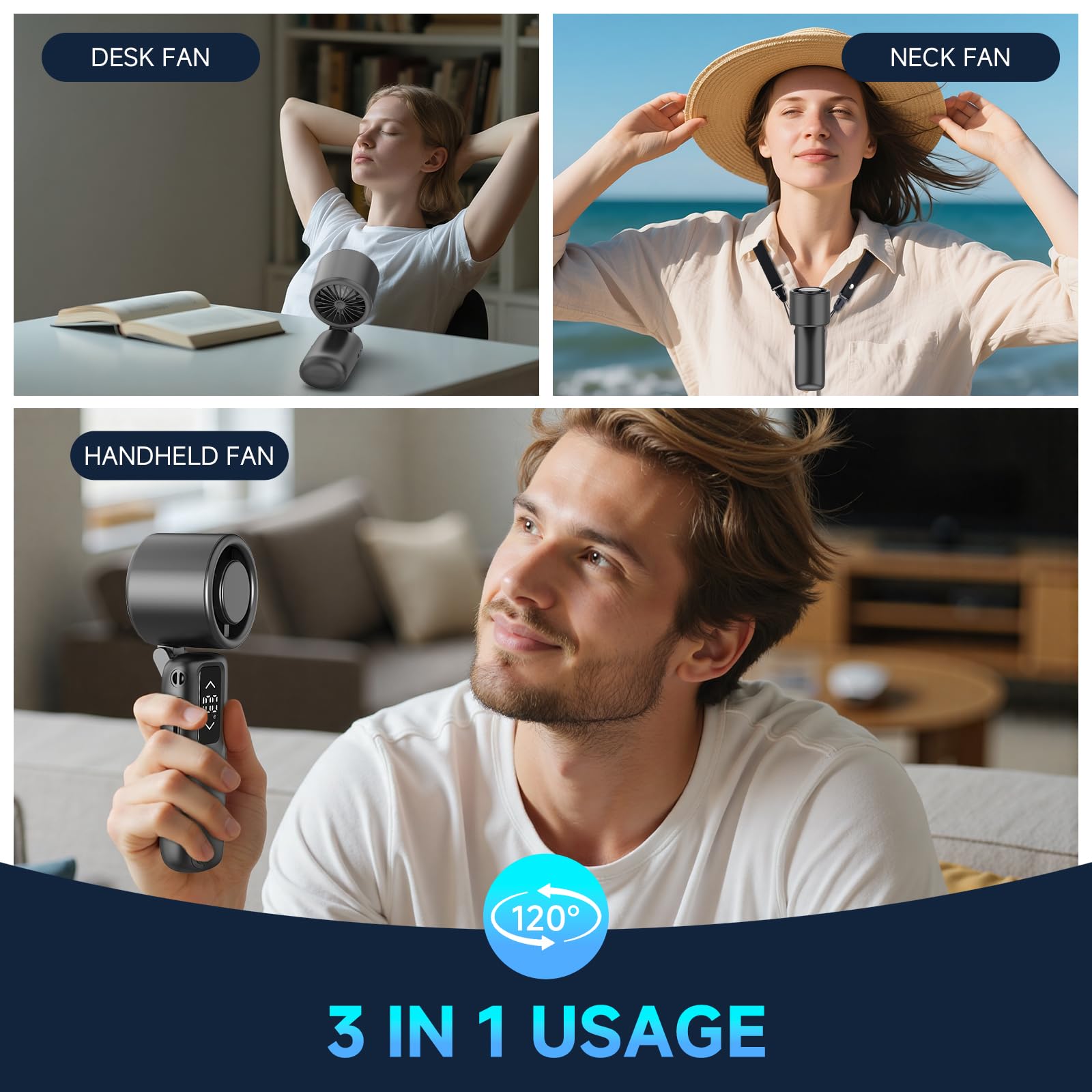 Portable Handheld Turbo Fan, 1-100 Gear Wind, Battery Operated, Up to 23 Working Hours, 3 IN 1 Personal Fan with Air Turbo Tech, Cooling Essentials for Indoor/Outdoor