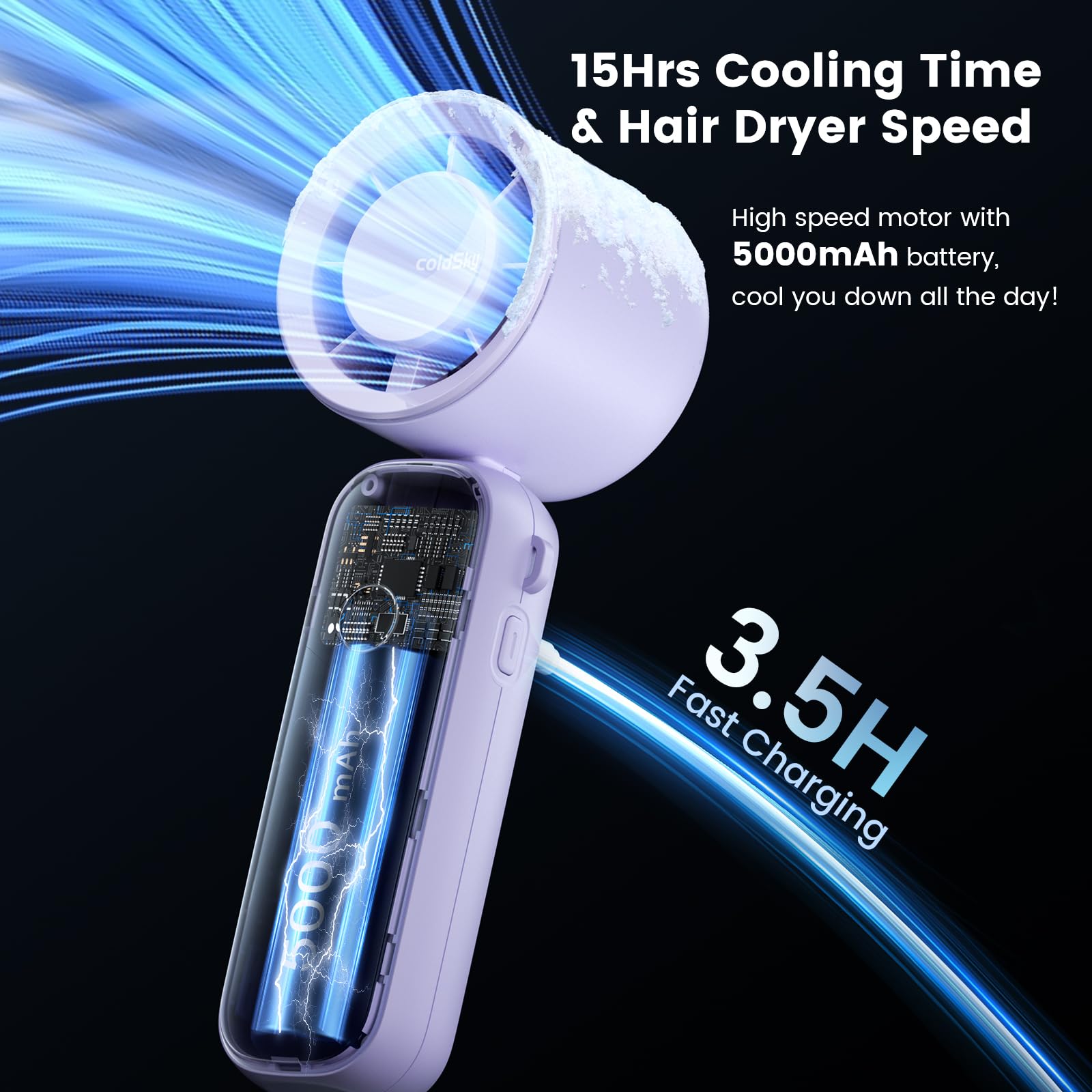 - Long-Lasting & 10W Fast Charging: Powered by a high-capacity 5000mAh rechargeable battery, the small fan provides up to 4-15 hours cooling, depending on the speed setting. The included 10W fast charging cable ensures quick recharging, reducing downtime to just a few hours. Perfect for outdoor activities or extended use without frequent recharging.
