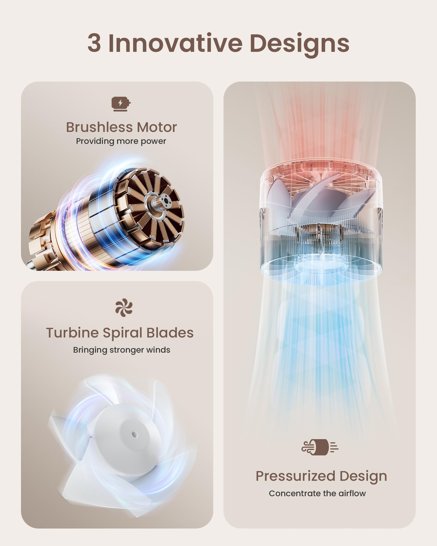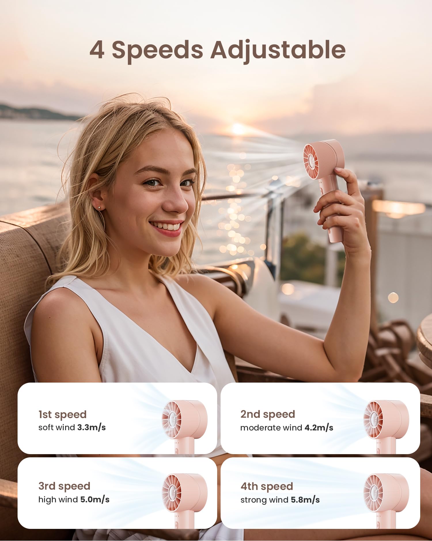 - 【High-Speed Brushless Motor】Equipped with a powerful permanent magnet brushless motor, this handheld fan offers 4-speed options - 3600r/m, 4600r/m, 5600r/m, and 7000r/m - enabling you to quickly escape from the heat.