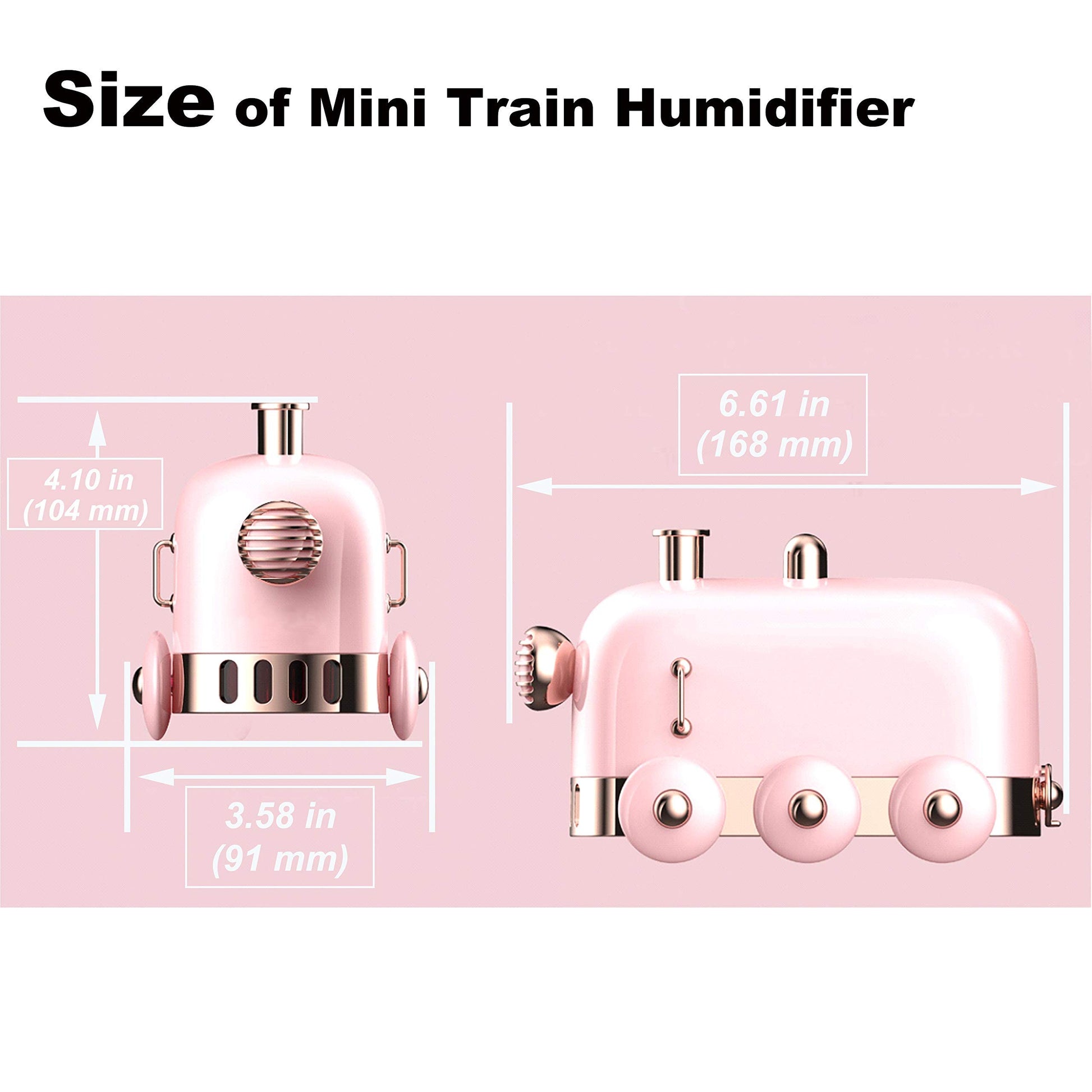 Portable Mini Humidifier, 300ml Cute Train Small Humidifier, Cool Mist Diffuser for Desktop / Office / Bedroom, Ultra Quiet, LED Light Function, USB Charge, Auto Shut Off