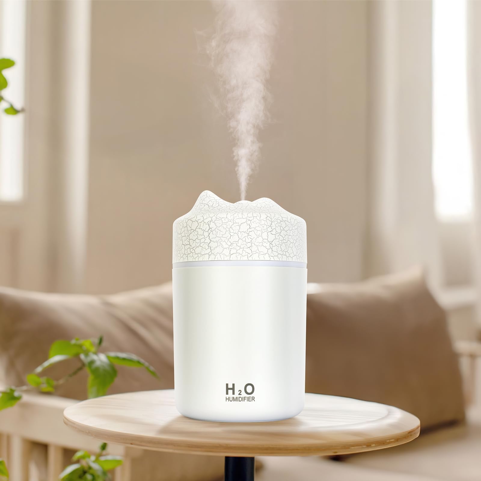 - Portable & Space-Saving Design: This mini humidifier boasts an ultra-compact size of just 5" tall and a generous capacity of 300ml. Its design takes up minimal space while providing powerful hydration, making it ideal for desks, nightstands, travel, or car cup holders.