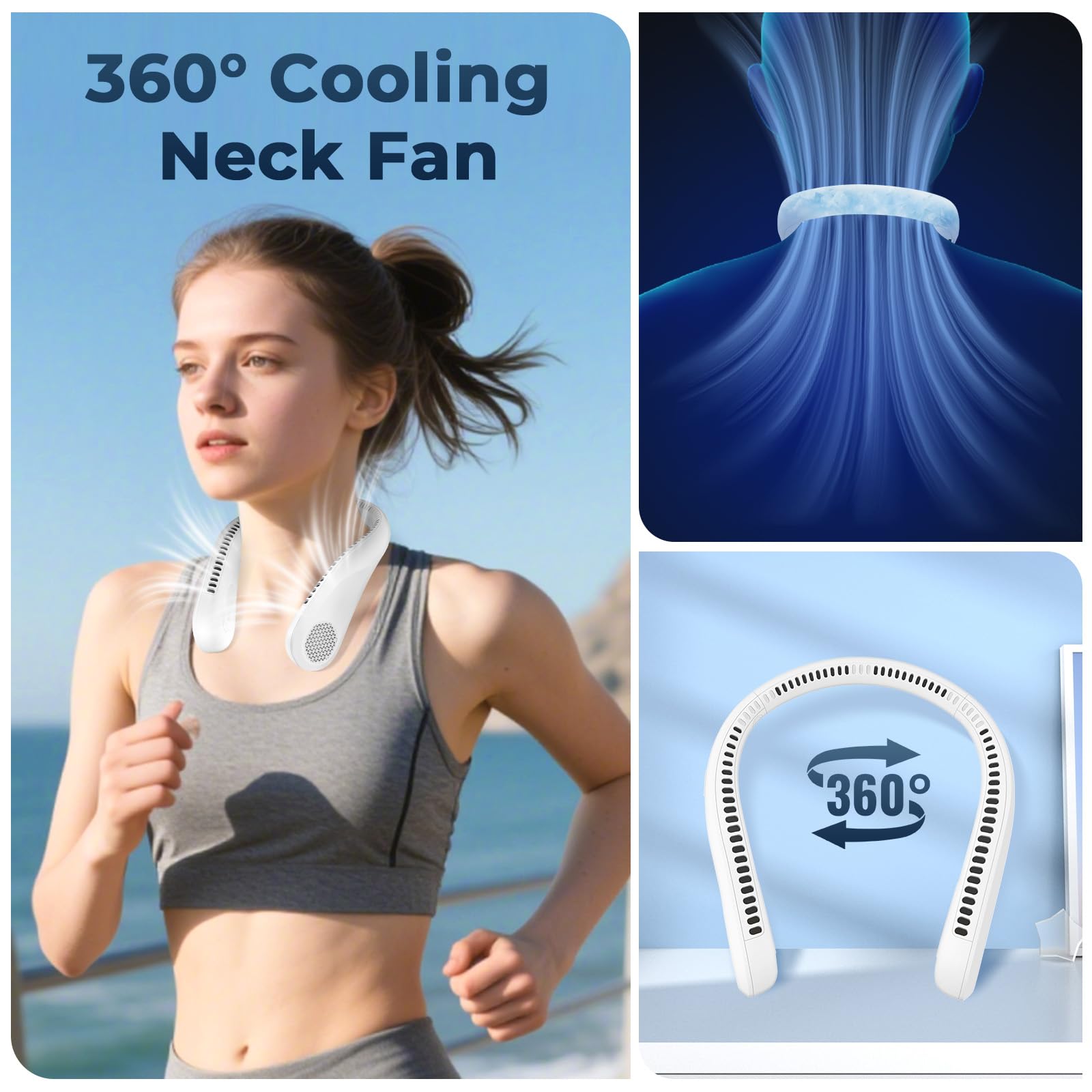 - 360°Cooling & Safety Design: Portable neck fan has been upgraded air outlets, achieving 360-degree all-round air delivery, which can quickly cool down. Moreover, it adopts a bladeless design, so there is no need to worry about pinching hair or scratching fingers, ensuring that people with long hair, children and the elderly can use it safely.