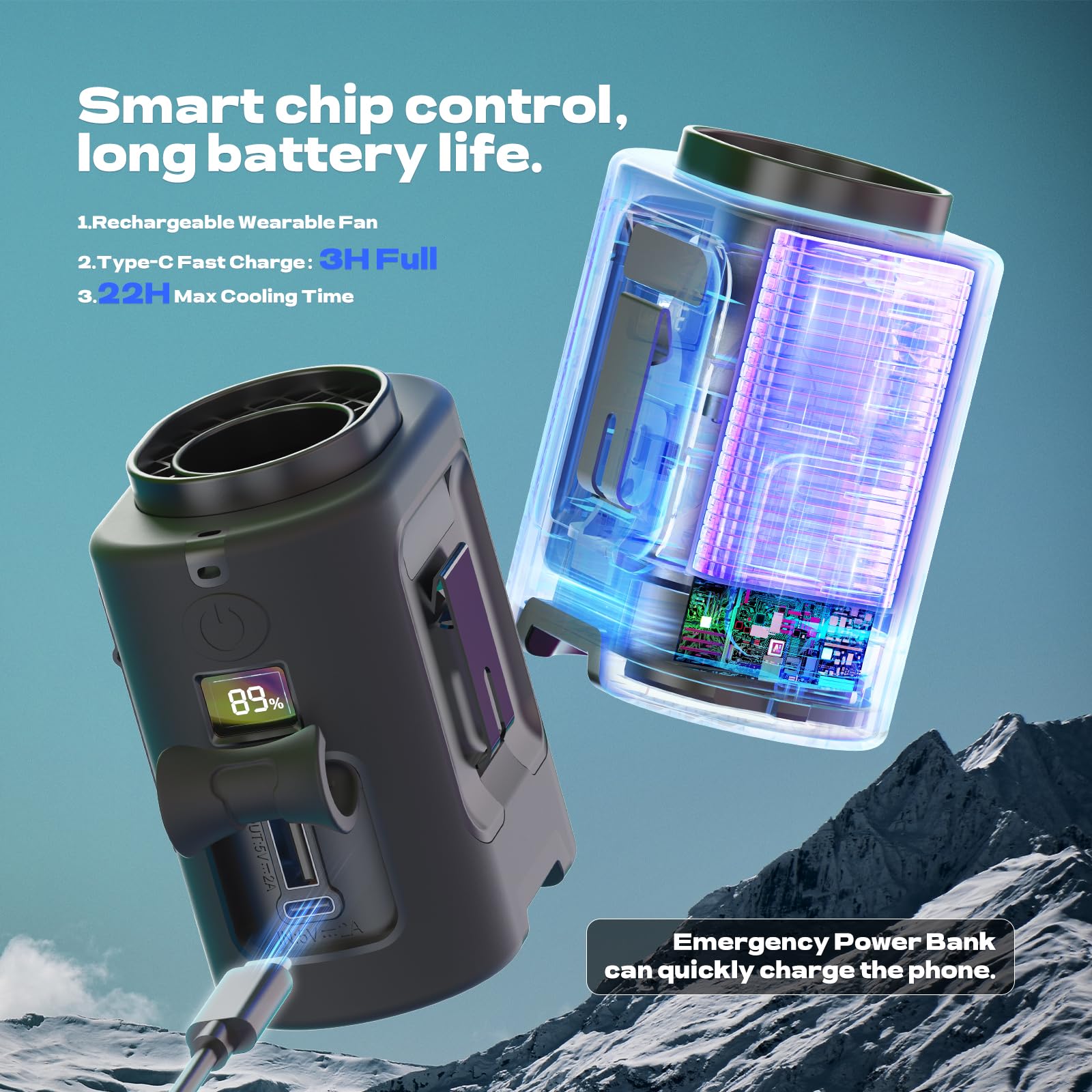 - 【Outdoor Preferred Portable Fan】A multifunctional personal fan with 5-in-1 capabilities: waist fan, neck fan, handheld fan, desktop fan, and emergency power supply. It meets all your indoor and outdoor needs. Perfect for job sites, farms, delivery, gardening, hiking, fishing, and other activities. It effectively prevents heatstroke, keeps your hands free, and helps you stay cool while working, making it easy to beat the heat.