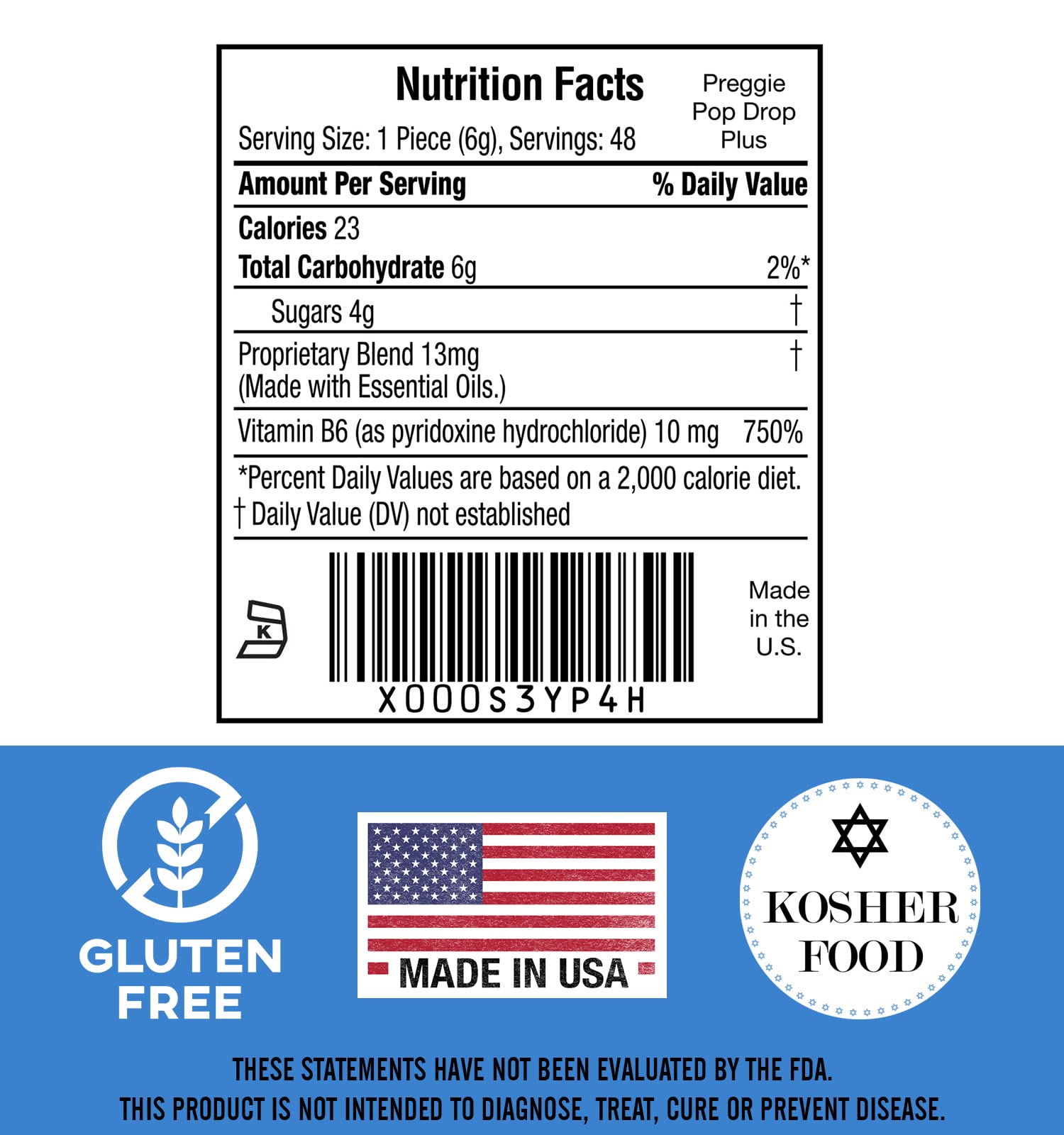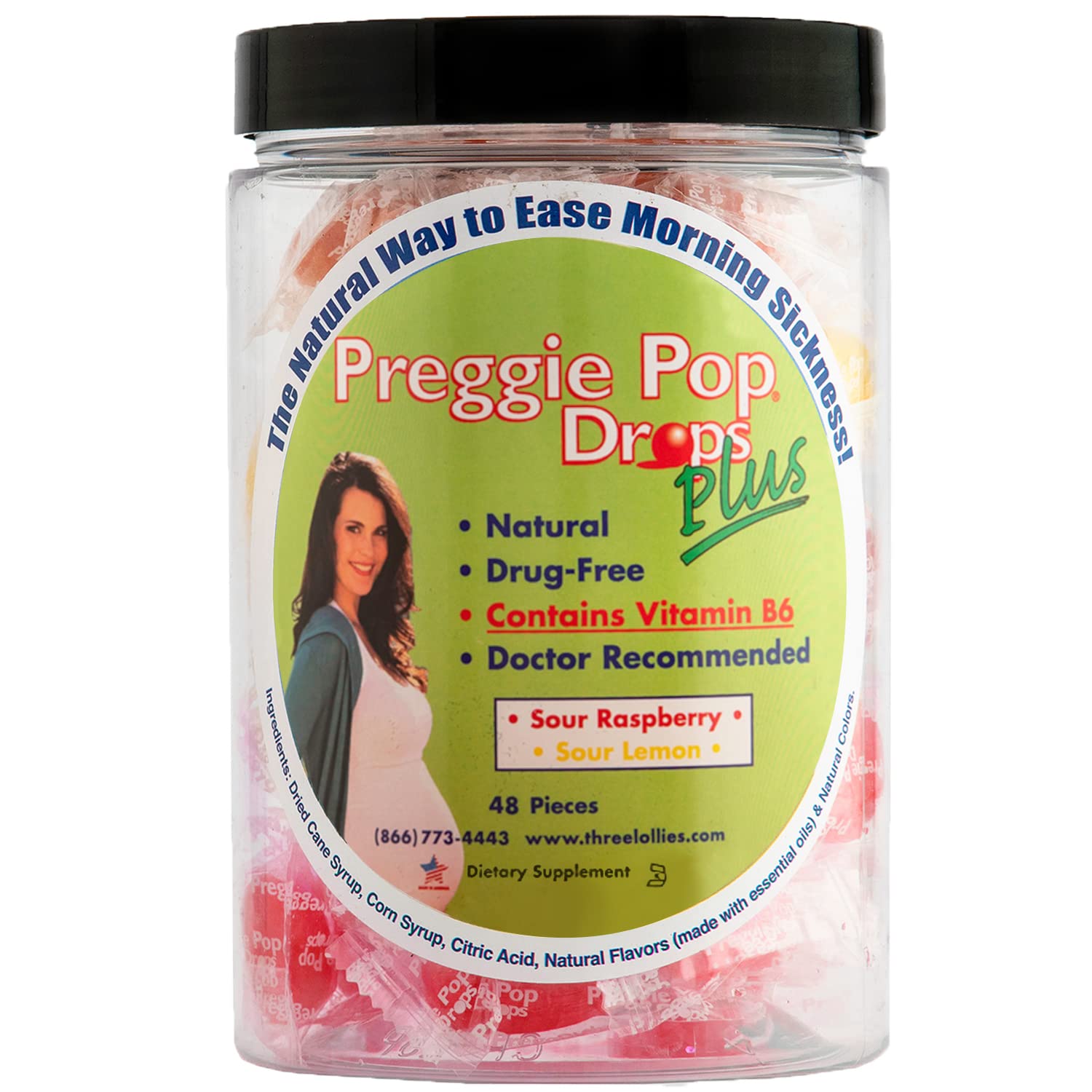 Preggie Pop Drops Plus Fortified with Vitamin B6 - Morning Sickness Relief Fortified with Vitamin B6. Preggie Pops for Relief for Pregnant Women Candy Drops. Sour Raspberry & Sour Lemon 48 Count