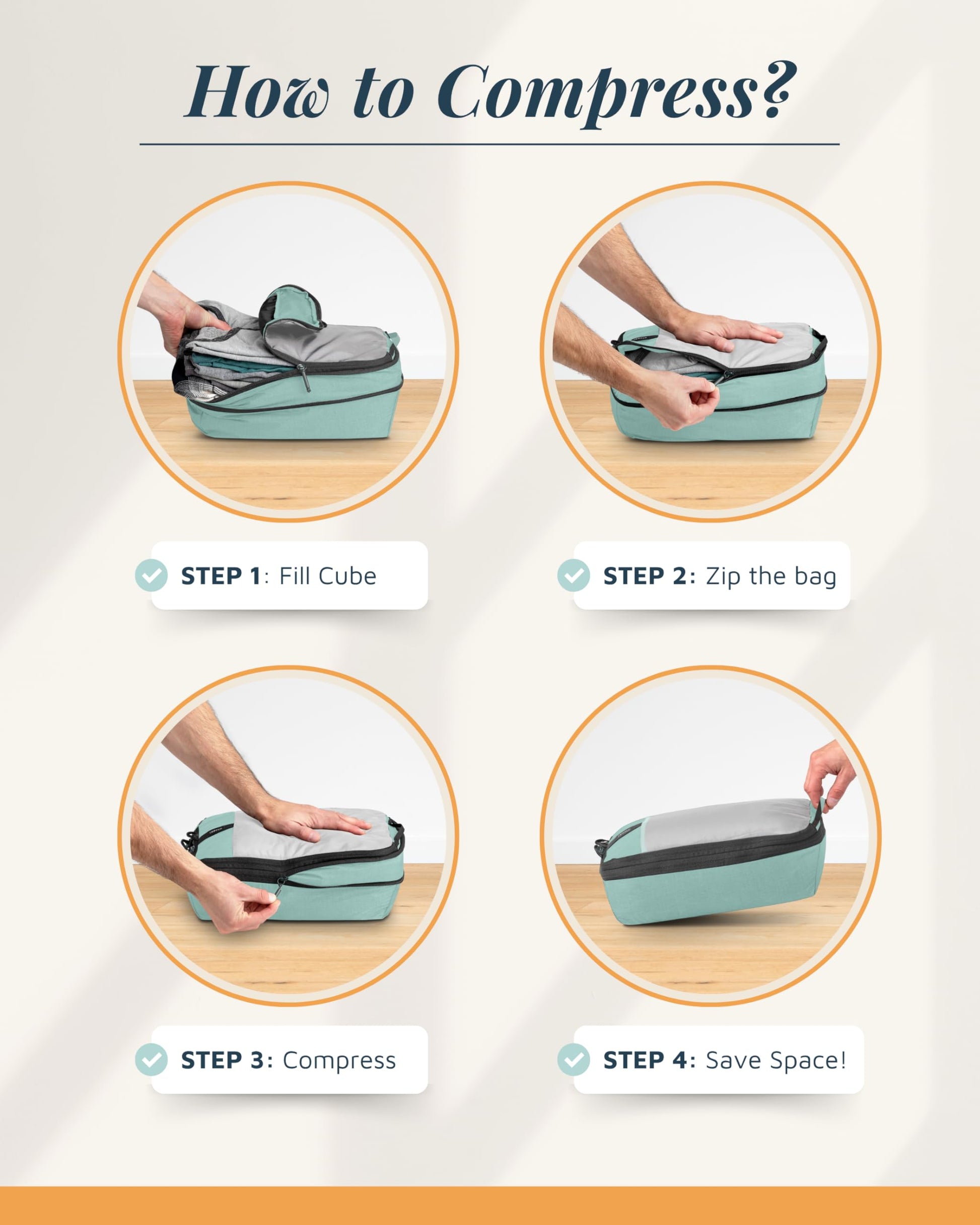 - Enjoy hassle-free packing with compression bags, allowing you to compress bulky items and create extra space in your luggage, making it easier to carry everything you need. Save up to 30% more space in your luggage.