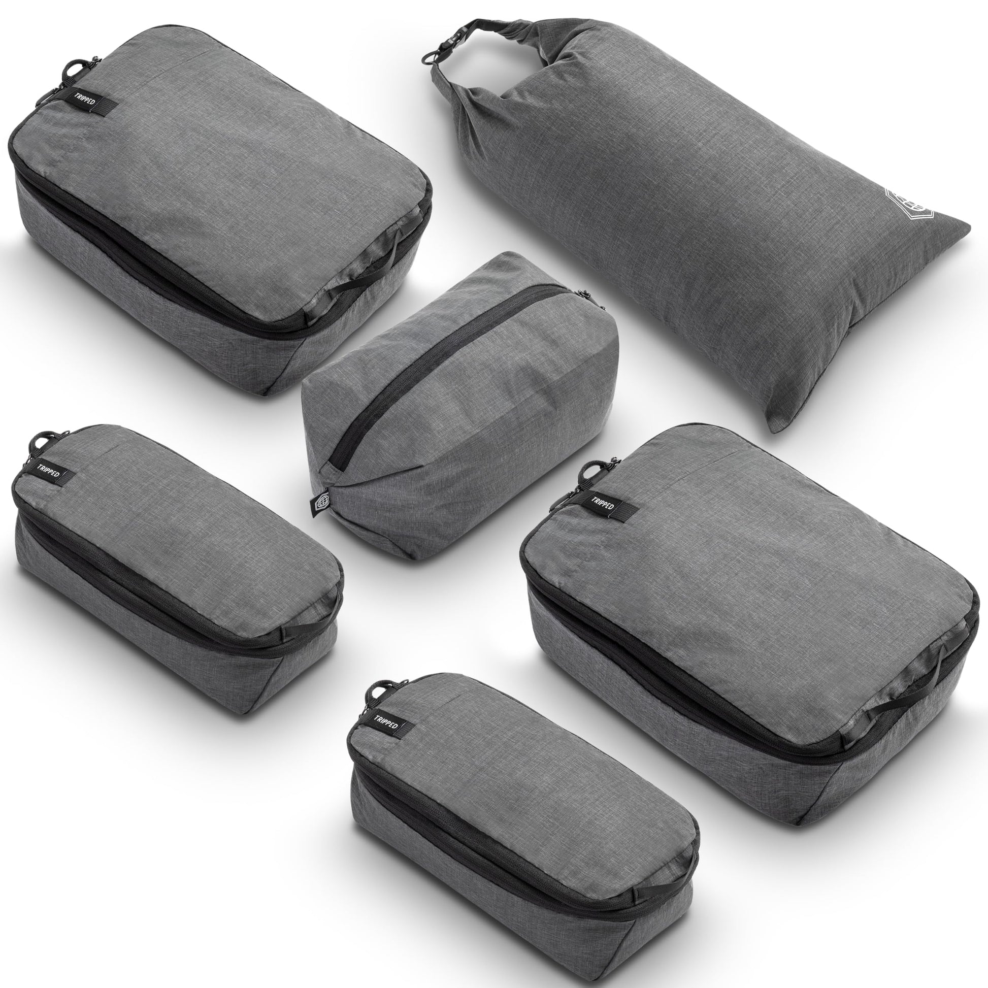 Premium Compression Packing Cubes for Travel, Compression Packaging Cube, Zip Bags Premium 6-Piece Set with laundry bag and shoe bag by TRIPPED Travel Gear (Grey)
