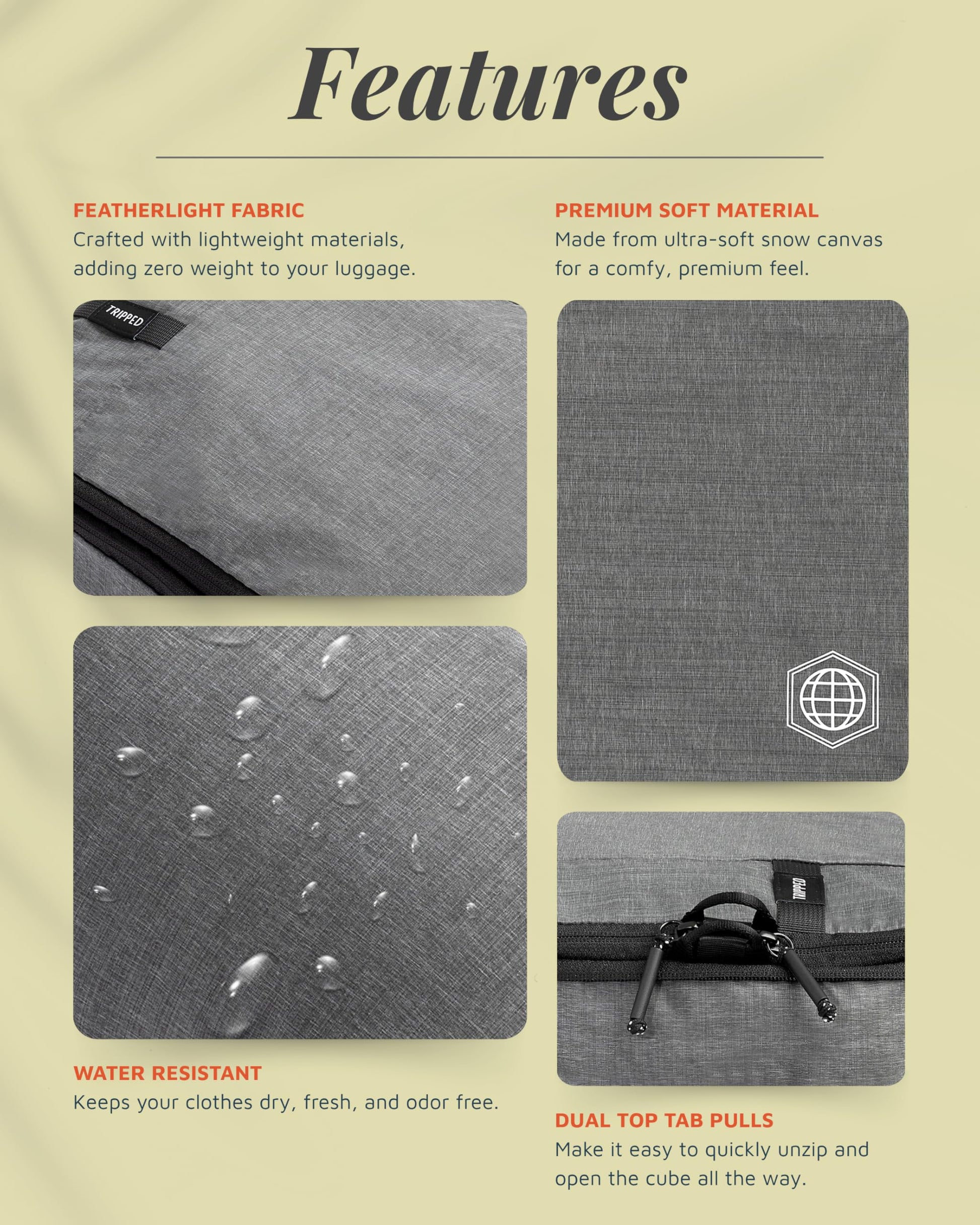 - Maximize your luggage space with TRIPPED Travel Gear compression packing cubes, designed to help you fit more into your suitcase while keeping your clothes wrinkle-free and organized for your adventures