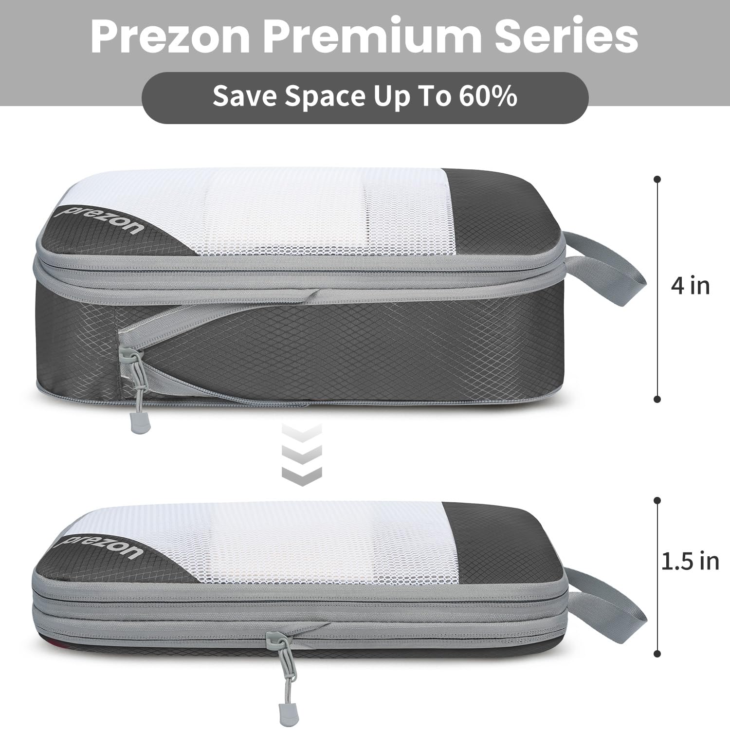 Prezon 8 Set/6 Set/4 Set Compression Packing Cubes for Travel, Lightweight Vacation Travel Essentials,Accessories for Suitcase Organizer Bags Set, Durable Luggage Organizer (6-half mesh-Grey)