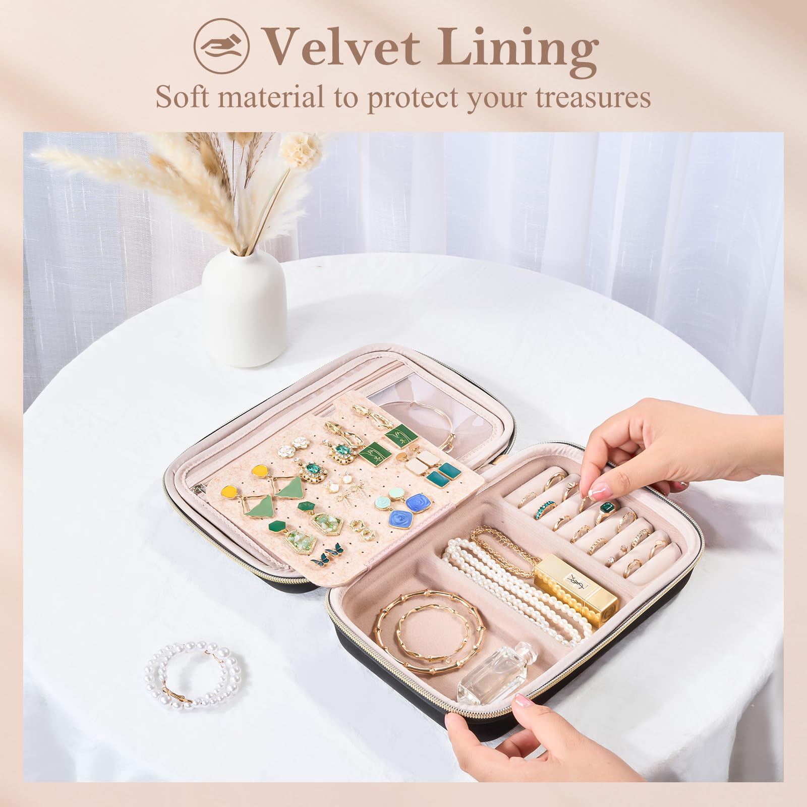 - Shockproof hard EVA shell travel jewelry case with velvety covering and lining offers great protection against scratches and impacts; Dimension: 9.84*6.5*2.76"