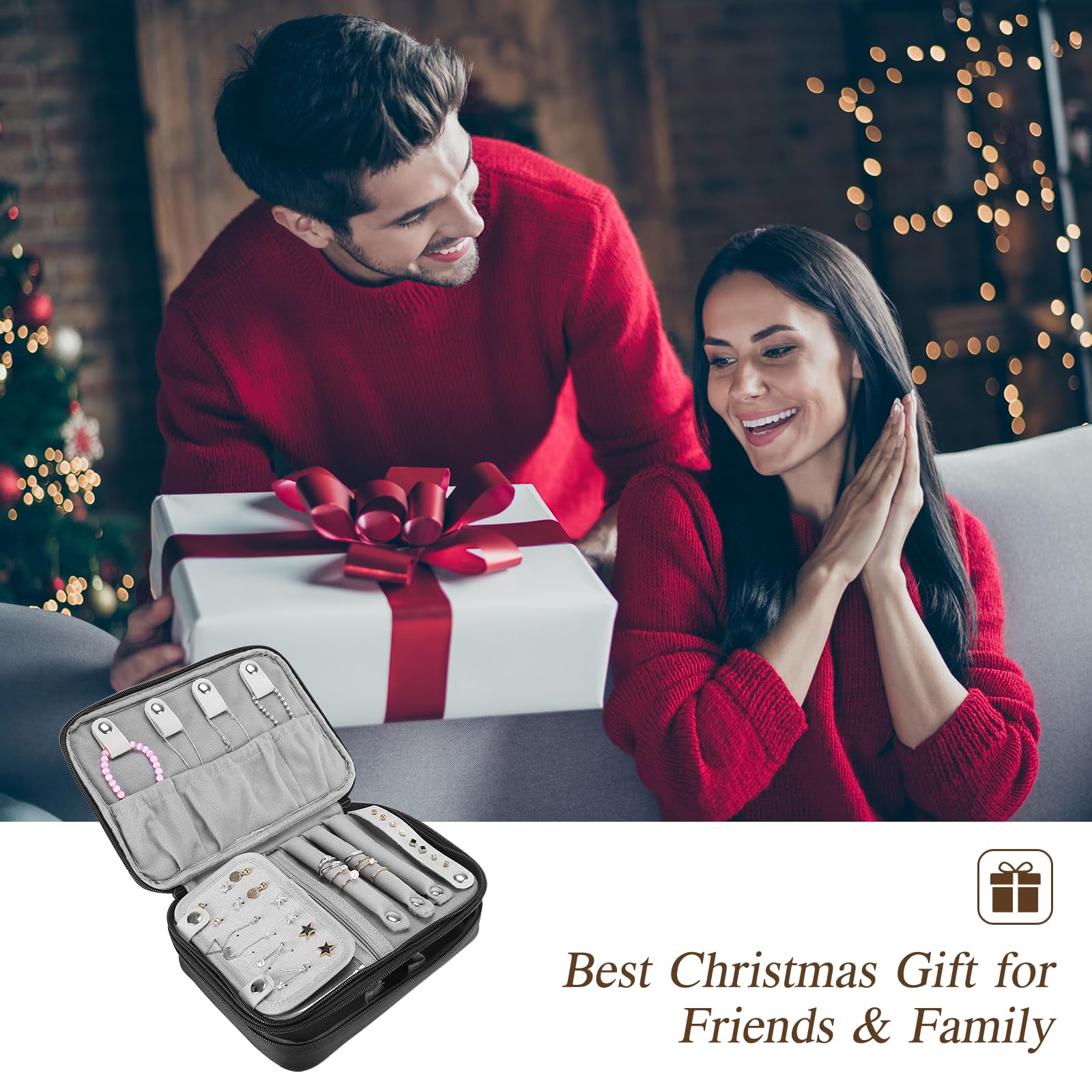 - Double layer design, main storage compartment with detachable dividers, clear zippered pockets, bracelet necklace snaps, earrings panel, earrings carrier straps and ring row to keep your jewelry separated; No tangle, no loss, no damage