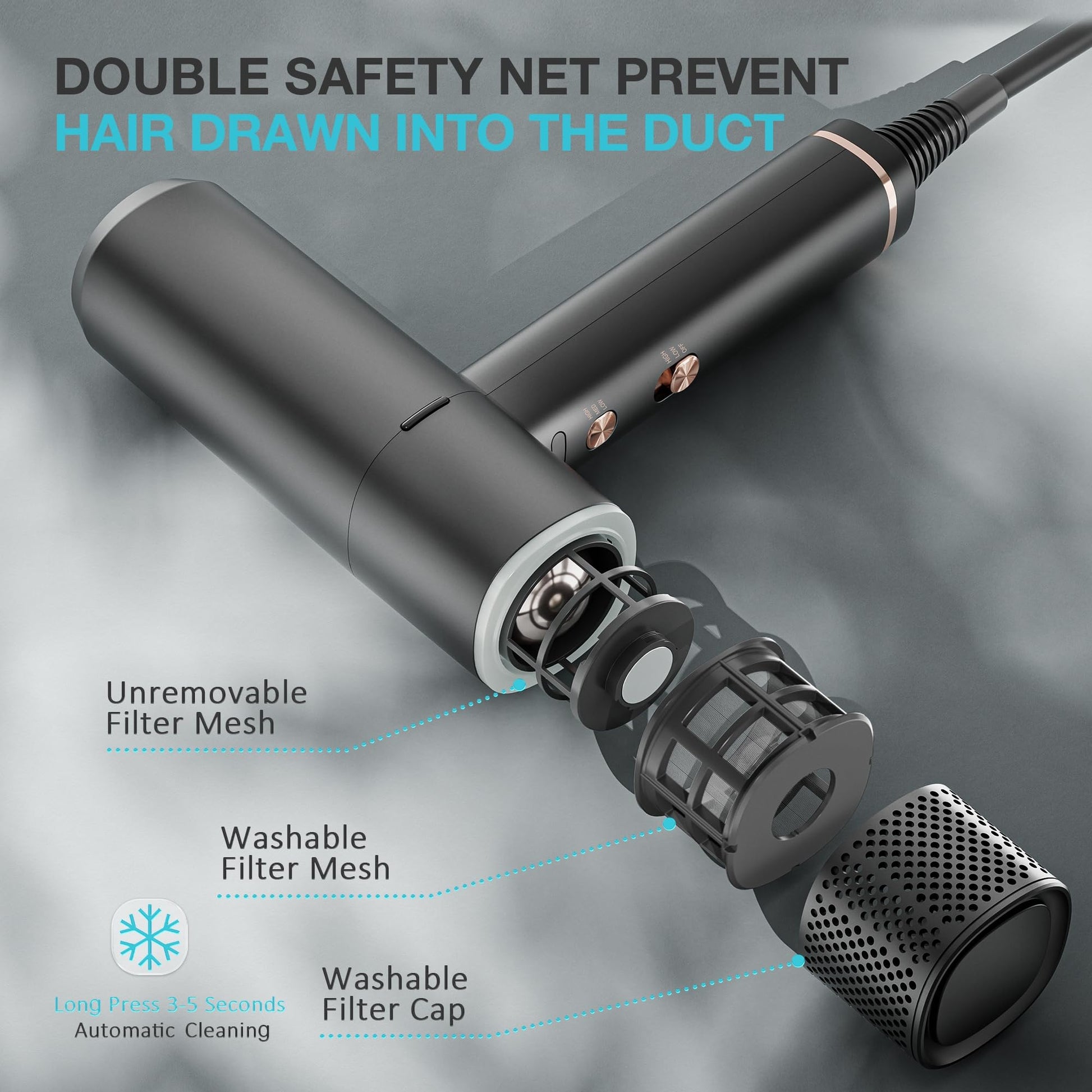 - Lightweight and Portable Hair Dryer: This is a sleekly designed lightweight and portable travel hair dryer with an ergonomic design weighing 1.21 lbs/549g, which is 20% lighter than other hair dryers. Blow dryer with diffuser is just 0.019 cubic feet, it is 10% lighter than other hair dryers. Hair dryers for women has a comfortable grip and simple buttons. Features a detachable secure filter mesh to prevent hair from entering the air duct, providing a safe user experience(Note: Please clean the dust regularly to avoid burning out the hair dryer)