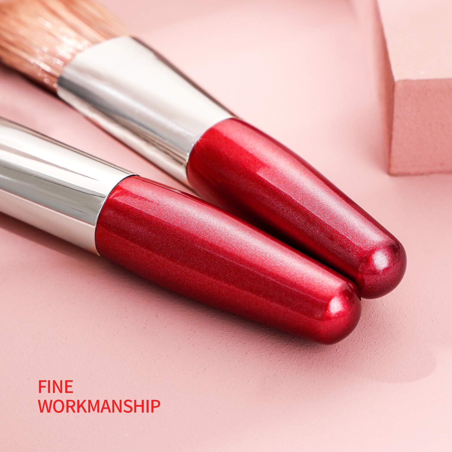 Protable Mini Makeup Brushes Set with Travel Case,5PCS Cosmetic Brushes Kit(Natural and Synthetic Hair)-Includes Foundation-Contouring-Blending-Blush And Eyeshadow Brushes(Travel Size) Red