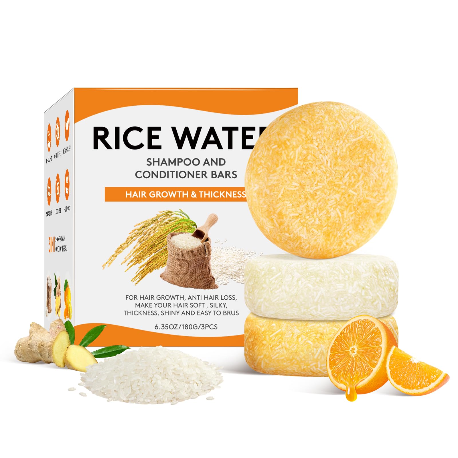 - đžăNatural IngredientsăThis Rice Water shampoo bar is infused with natural ingredientsâincluding rice water protein, ginger extract, coconut, and olivesâto nourish hair, strengthen the scalp, and maintain your scalpâs optimal pH balance. It offers a salon-quality experience, creating a healthy environment from root to tip.