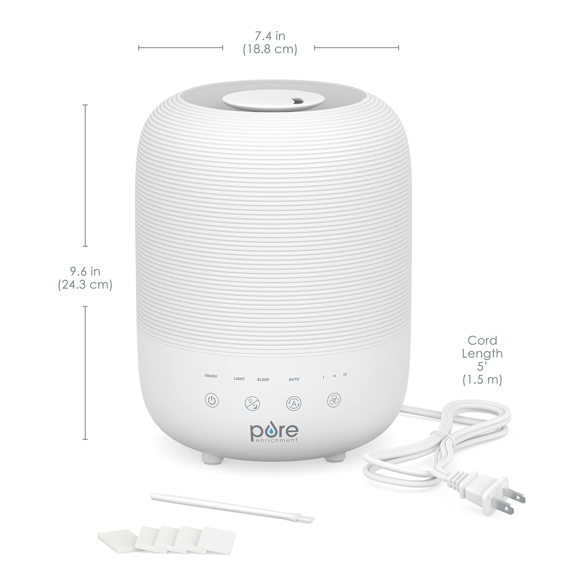 - What You Get: Humidifier, cleaning brush, 5 scent pads, manual, and Pure Enrichment’s guaranteed 5-Year Manufacturer's Warranty. Our customer support team provides daily quality service and peace of mind to millions worldwide all from a brand you can trust.