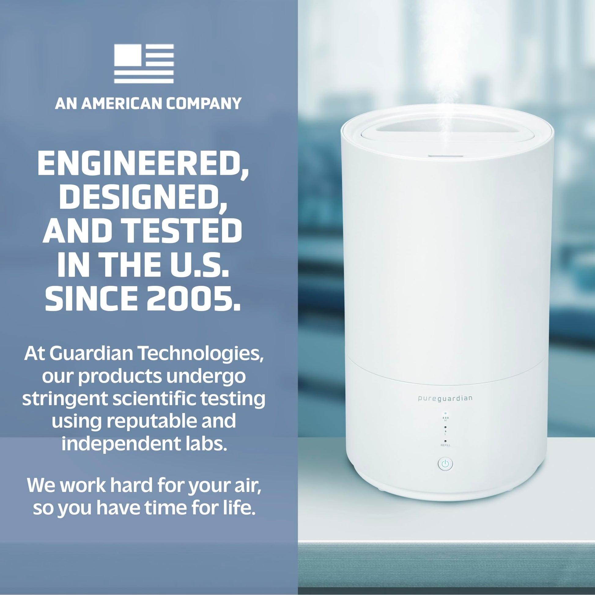 - QUIET OPERATION - From the makers of GermGuardian, this ultrasonic humidifier for bedrooms and spaces of up to 320 square feet runs whisper quiet for up to 30 hours, creating a tranquil environment for you to drift off to sleep and stay asleep all night.