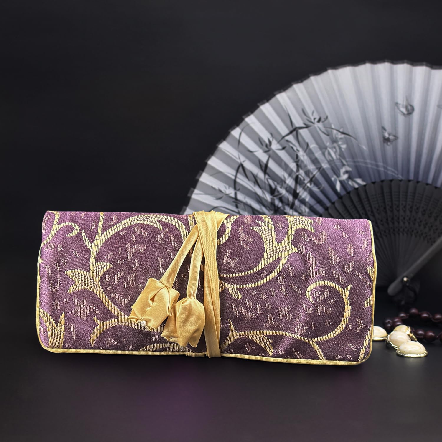 - 【Violet Jewelry Organizer Roll】Our jewelry pouches adopts original design -- Purple background with gold "Plant Stem" pattern, retro and elegant. Perfect for adding a touch of sophistication to jewelry storage.