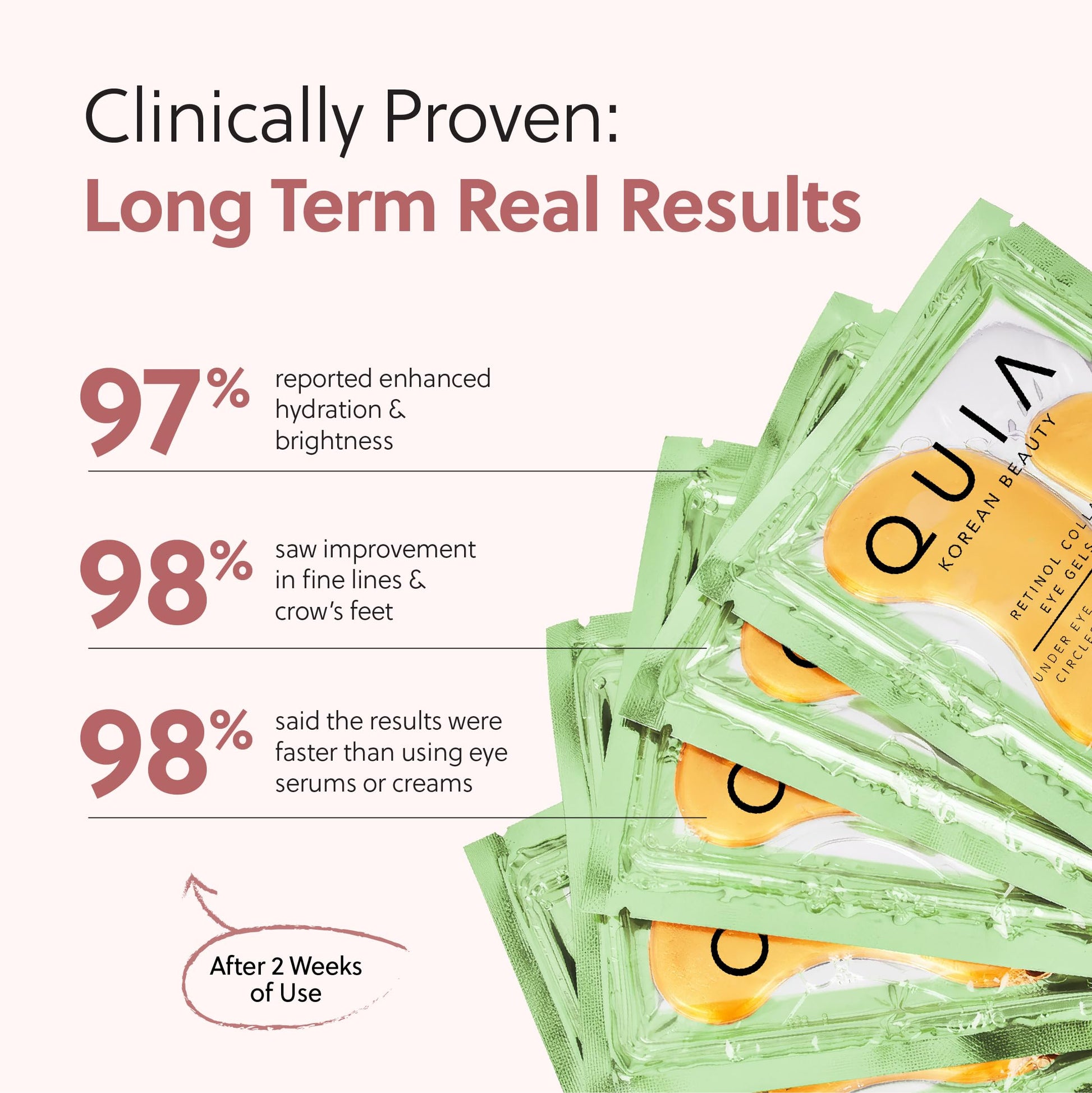 QUIA Hydrogel Eye Patches with Collagen – Depuff, Smooth Fine Lines & Hydrate in 15 Minutes – No-Slip, Soothing Formula – 20 Pairs for All Skin Types