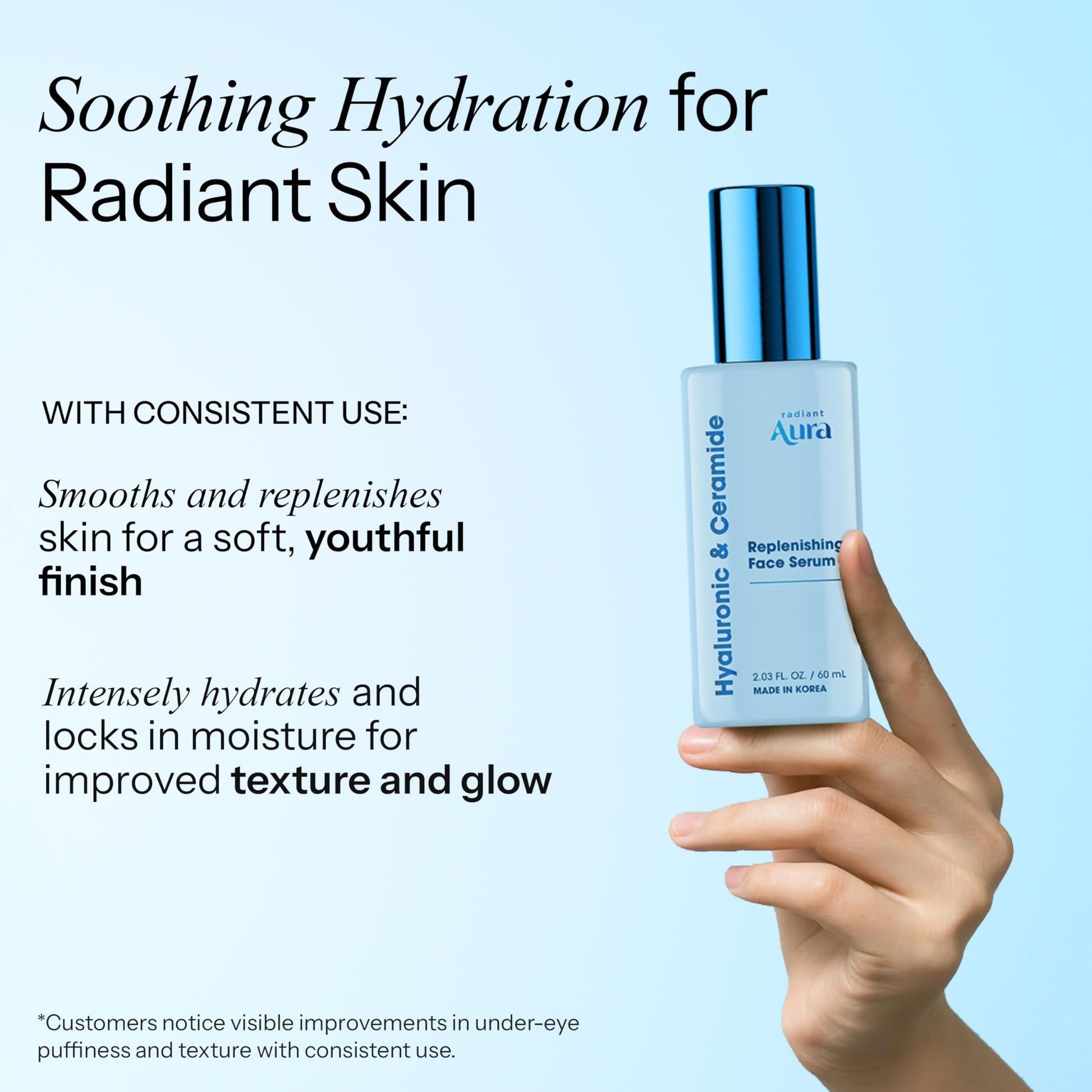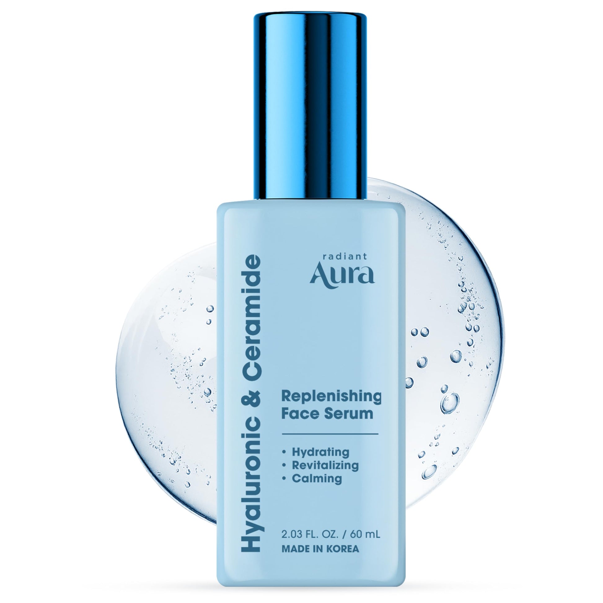 Radiant Aura Facial Serum with Hyaluronic Acid & Ceramide - Dermatologist Tested Korean Serum for Glowing Skin - Hydrating, Calming & Skin Barrier Repair - Suitable for Sensitive Skin - 2 Fl. Oz