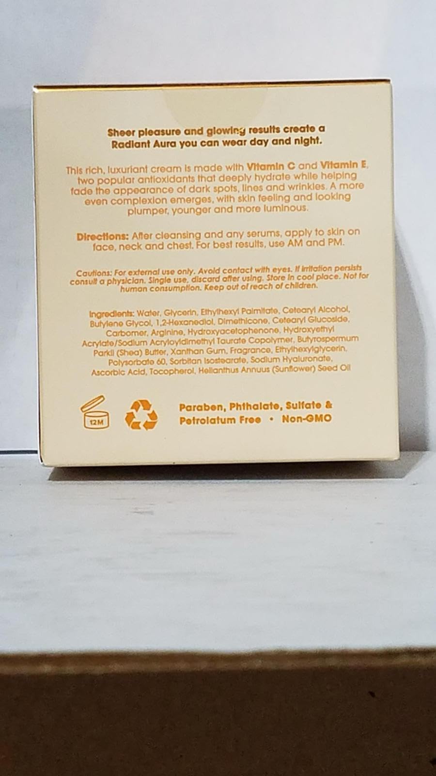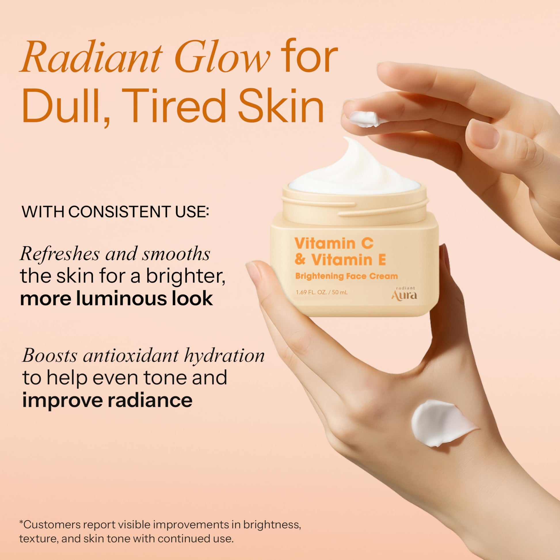 Radiant Aura Vitamin C & E Face Cream โ Korean Anti-Aging Moisturizer for Deep Hydration โ Daily Formula for Dry Skin, Helps Smooth Fine Lines & Supports Skin Barrier โ 1.67 oz / 50 ml