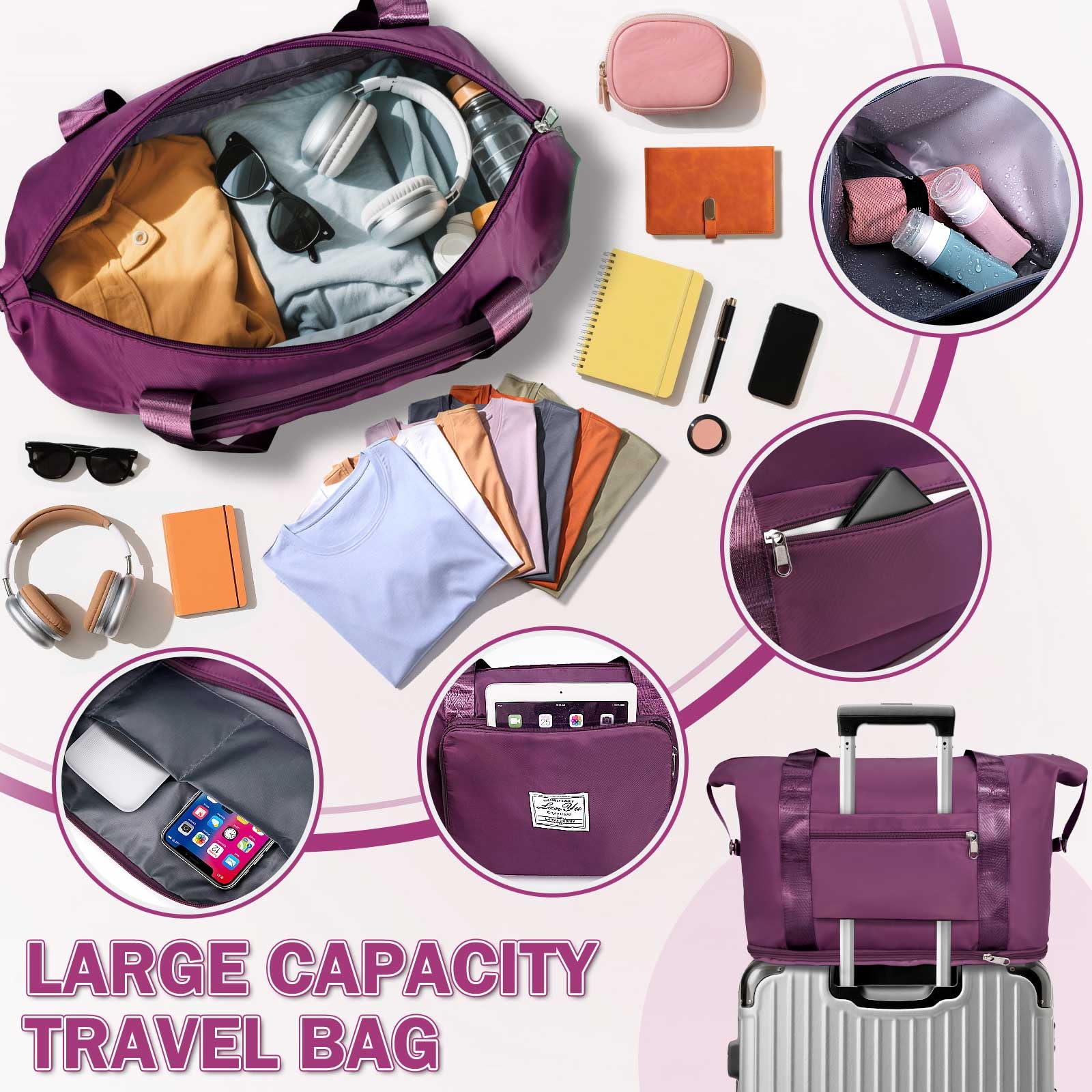 Ranslen Large Capacity Folding Travel Bag, Expansion Duffel Bag with Dry & Wet Separation