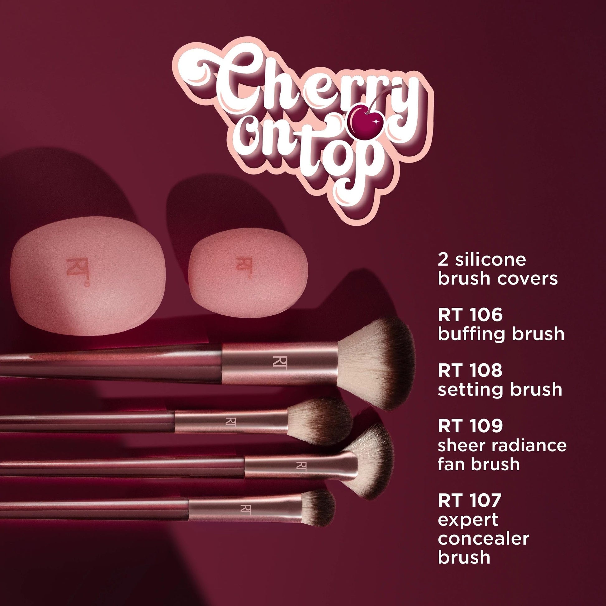 Details: The Real Techniques A Brighter Hue Base Set is a limited edition collection that features 4 multi-use makeup brushes to conceal, cover and brighten your base for a naturally effortless glow, as well as 2 bonus brush head covers for easy (and clean!) storage. This makeup brush set includes the 106 Buffing Brush, 107 Expert Concealer Brush, 108 Setting Brush, 109 Sheer Radiance Fan Brush, and 2 Silicone Brush Covers in small and medium sizes. Each makeup brush works with liquid, cream, and powder products such as foundation, concealer, setting powder, highlighter, and more. Try all the products from our limited-edition Cherry On Top Collection - because every makeup look deserves the cherry on top. Makeup brushes are easy to clean using our Real Techniques Brush + Sponge Cleansing Gel. They’re also 100% cruelty-free and made with UltraPlush synthetic bristles. We are Real Techniques, the brand of choice for all makeup users, no matter your level of expertise. Created in collaboration with leading makeup artists, we aspire to take the mystery out of choosing beauty tools so you can focus more time on putting your best face forward one blend at a time. From full makeup looks, to quick beauty hacks, RT brushes + sponges are exceptionally high quality for professional looking results every time. BUT… don’t be fooled by our affordable prices, RT tools are award-winning + purposefully designed because that’s what you deserve. Quality without compromise.
