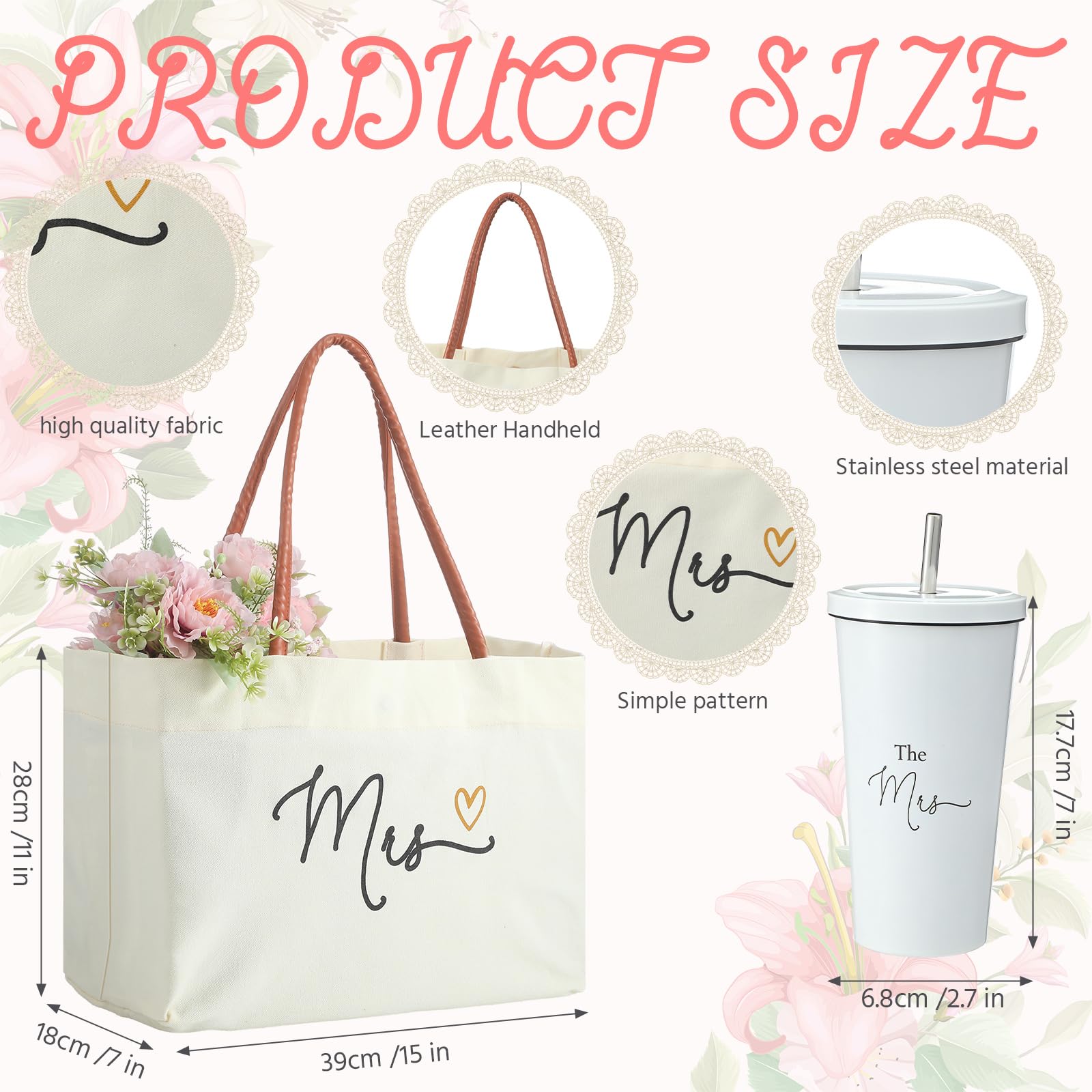 - Reliability Design with Convenience in Mind: experience of the 304 stainless steel mrs tumbler, equipped with an easy-to-use straw; The bride tote bag features a reinforced bottom and is spacious enough for all bridal journeys, offering both style and practicality in one cohesive package, it's the good complement to any bridal shower gifts