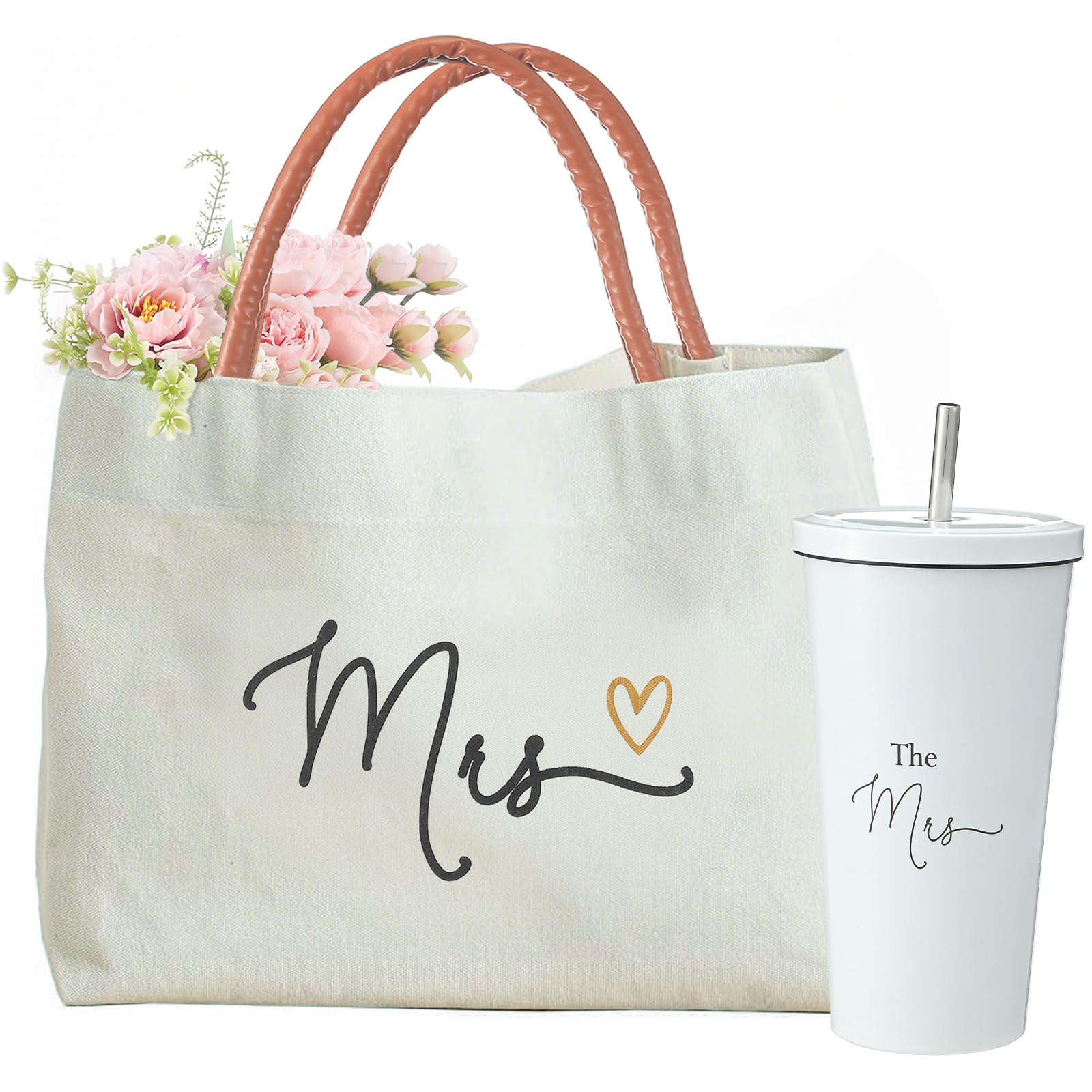 - Complete Package for Every Occasion: this thoughtfully curated package includes one stainless steel tumbler and a bride tote bag, ensuring you're well-prepared for any event; Whether it's your honeymoon or a casual outing, this ensemble serves as an unforgettable gift for any bride from the mrs bag collection