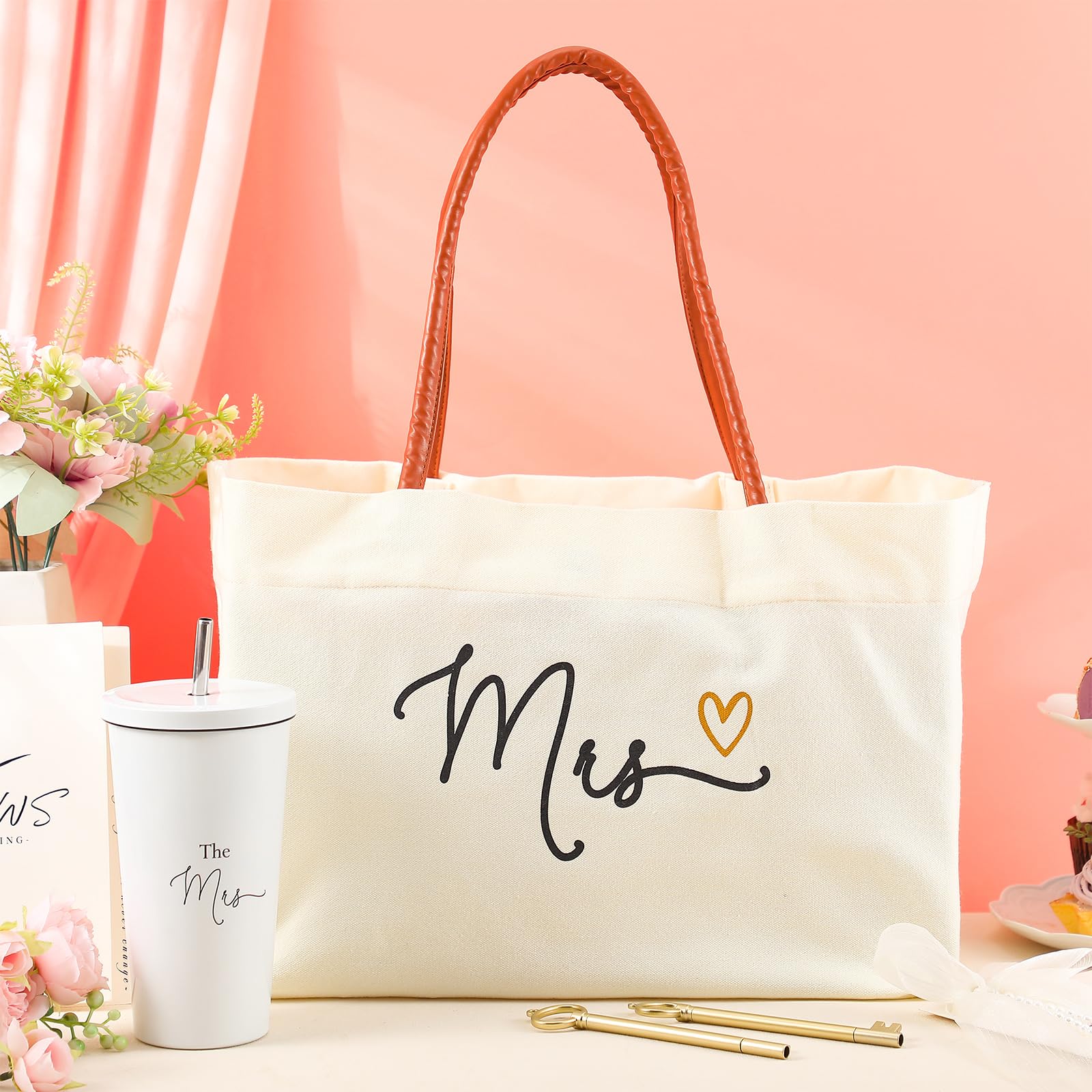 - Thoughtful Bridal Shower Gifts: our mrs tumbler and bride tote bag set make for meaningful bridal shower gifts; The elegantly designed tumbler serves up both style and function, while the spacious bride bag ensures the bride-to-be can carry all her essentials on her special day and beyond
