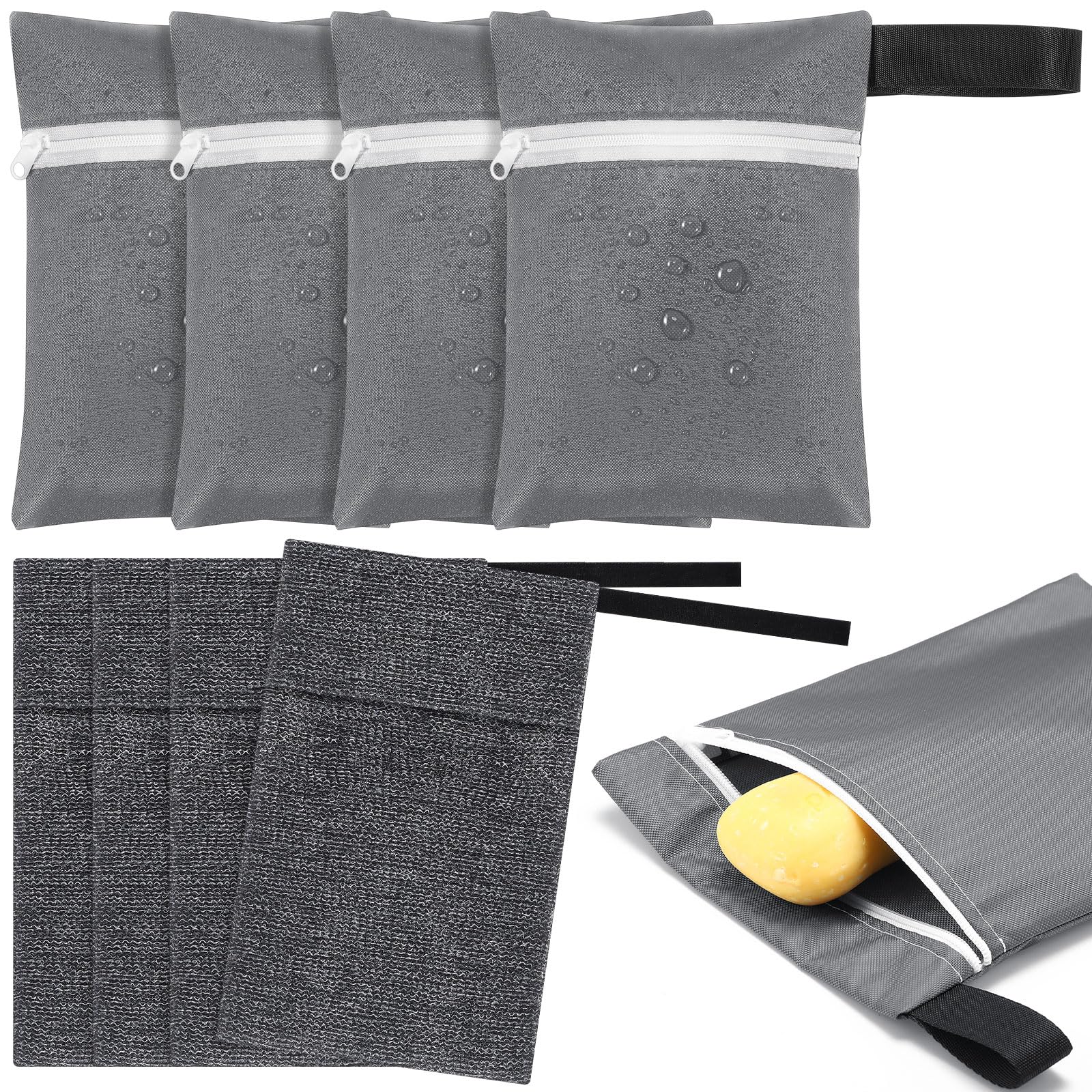 Reallnaive 8 Pcs Travel Soap Bar Bag Set, 4 Waterproof & Leakproof Soap Dish Case 4 Foaming Nets Multifunctional Toiletry Shower Gym Essentials Quick Dry Pouch for Camping Enthusiasts(Gray)